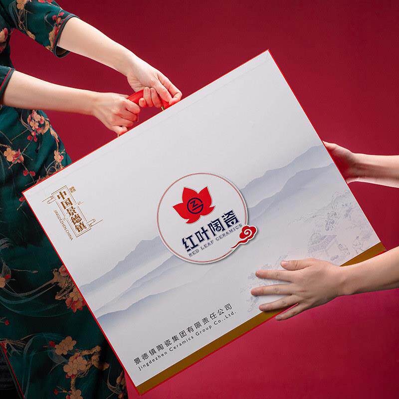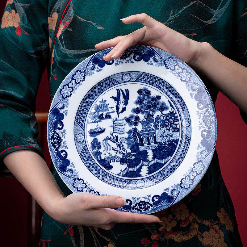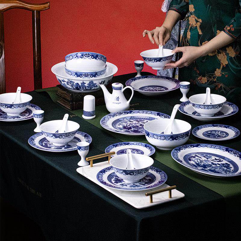 红叶瓷器陶瓷景德镇中式碗碟盘套装家用古典园林青花瓷礼盒餐具套