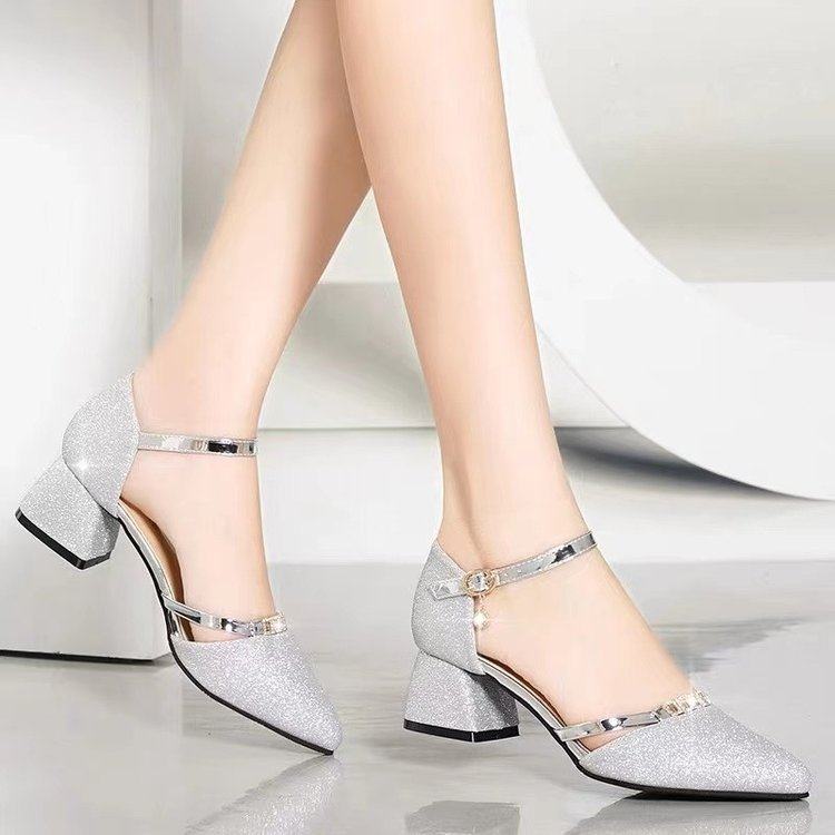 大东妞断码清仓真皮包头高跟夏季凉鞋女中跟粗跟一字扣旗袍单鞋女