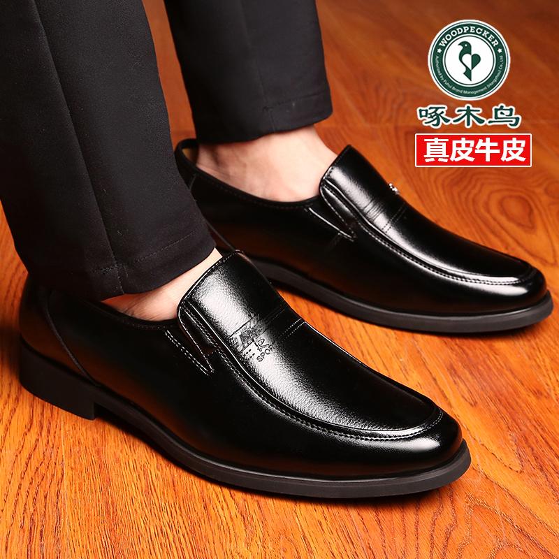 啄木鸟正品男士中老年真皮牛皮鞋新款商务正装爸爸鞋防滑耐磨皮鞋