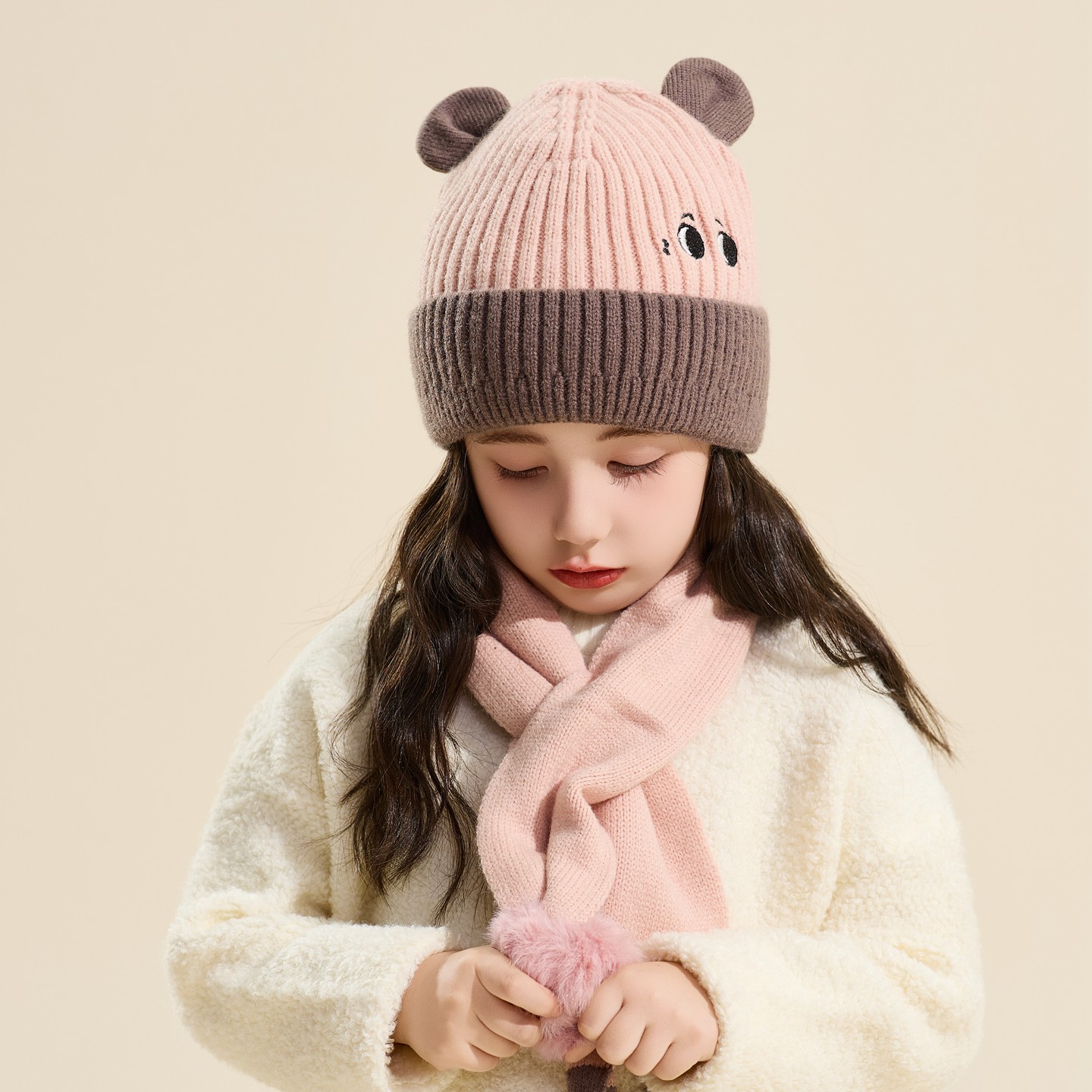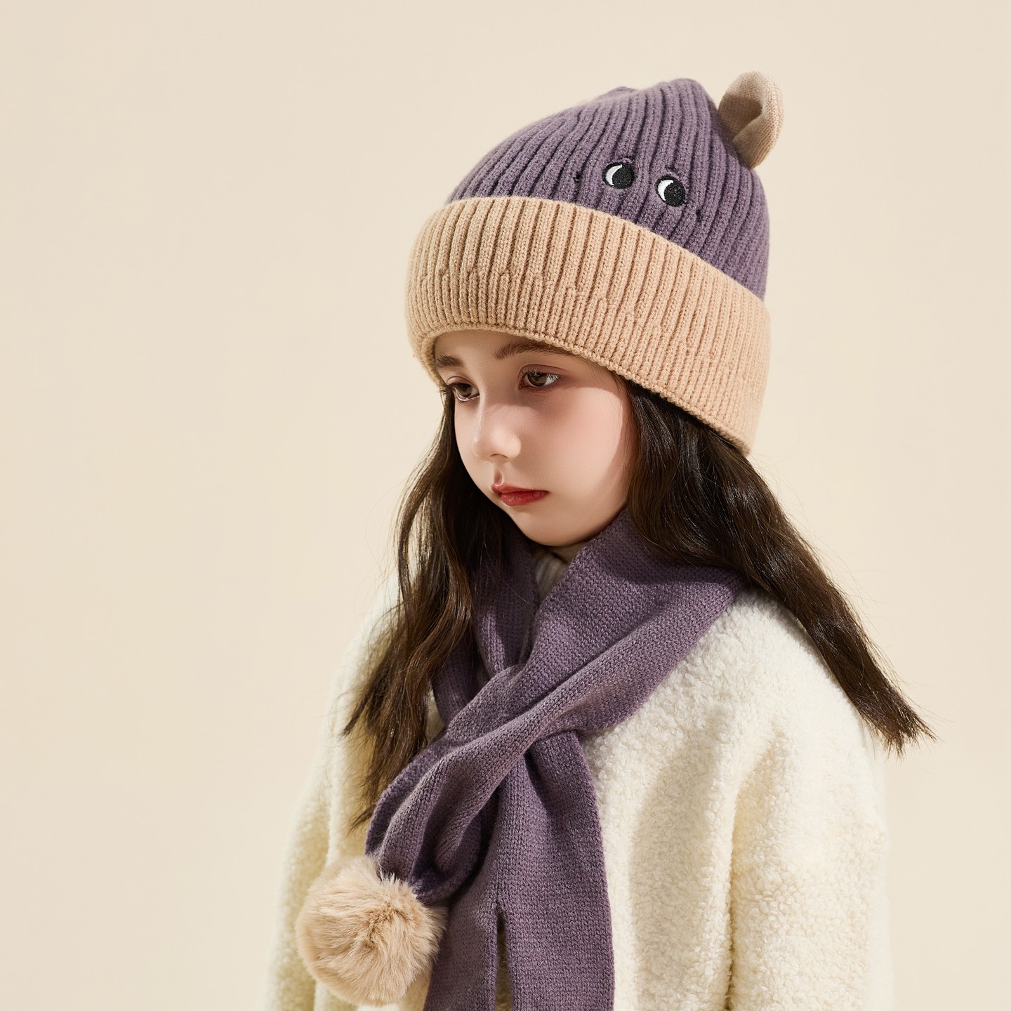 儿童帽子围脖两件套秋冬季男童女孩保暖护耳宝宝毛线帽子围巾套装