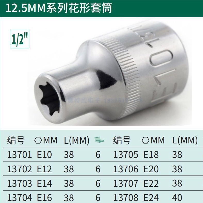 世达E型套筒13701大飞花键花型套头E10E16E18E20E22内花套管13708