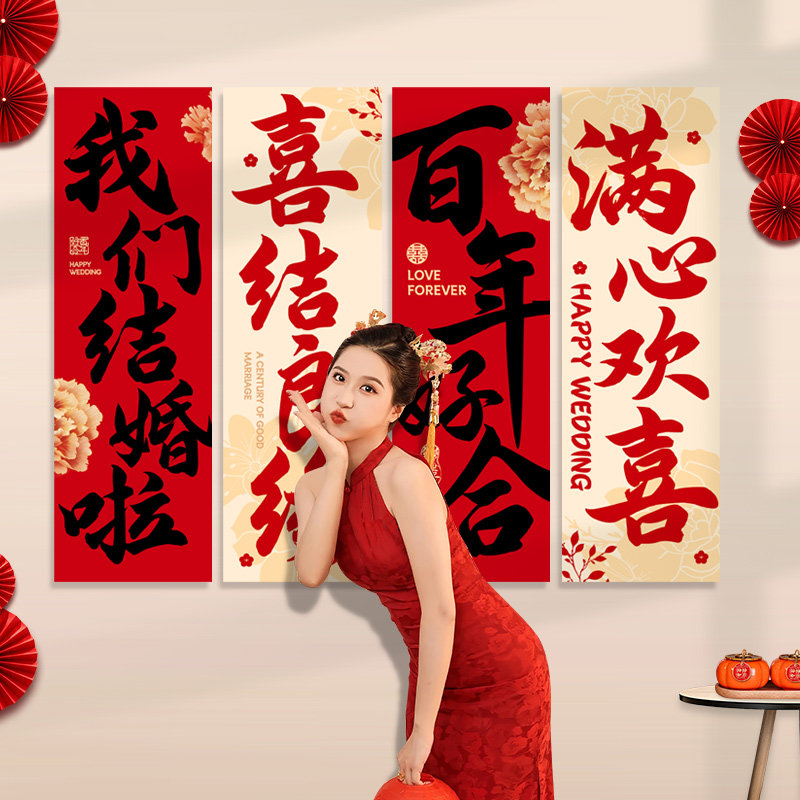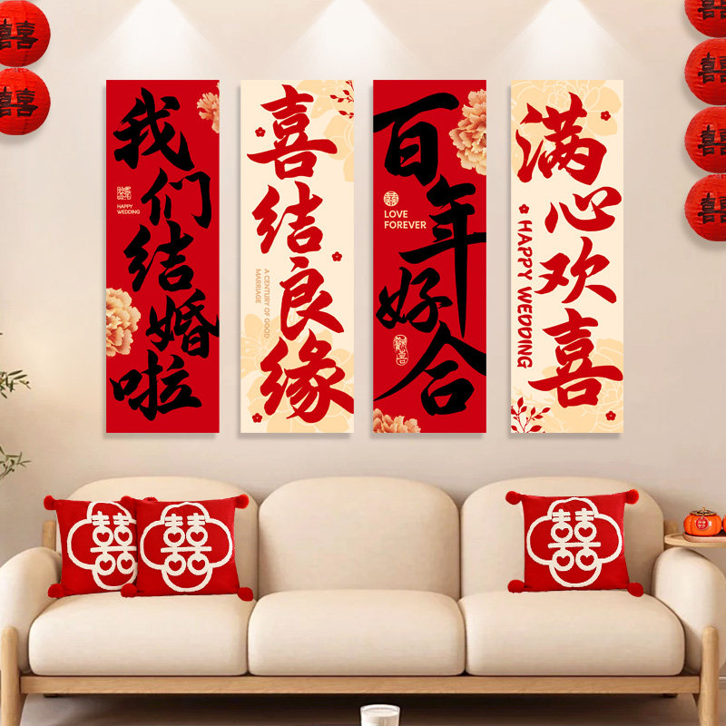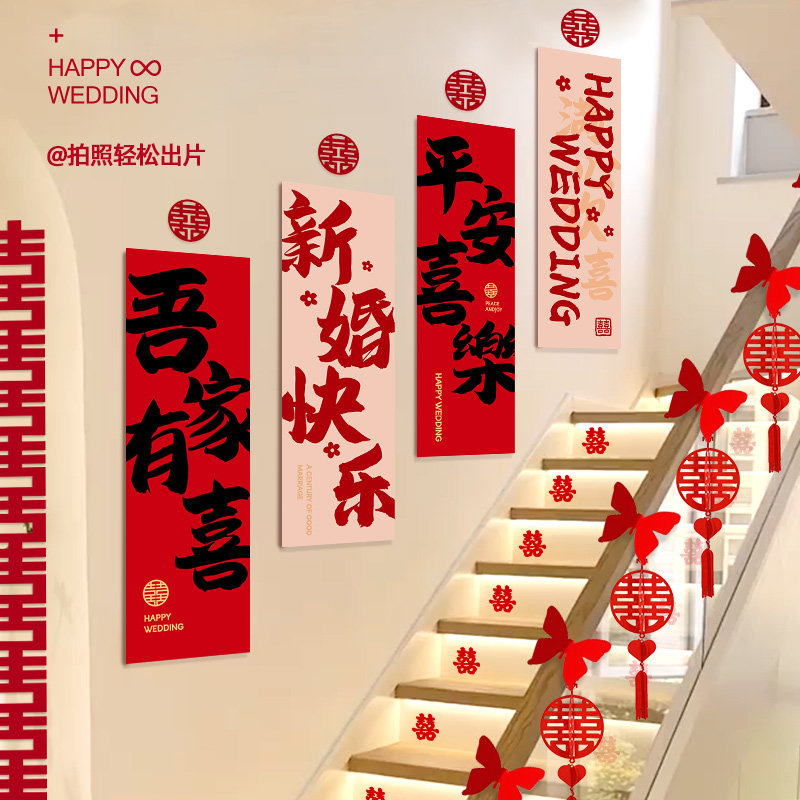 结婚楼梯间背景墙布置套装婚房客厅沙发喜字装饰婚庆用品大全