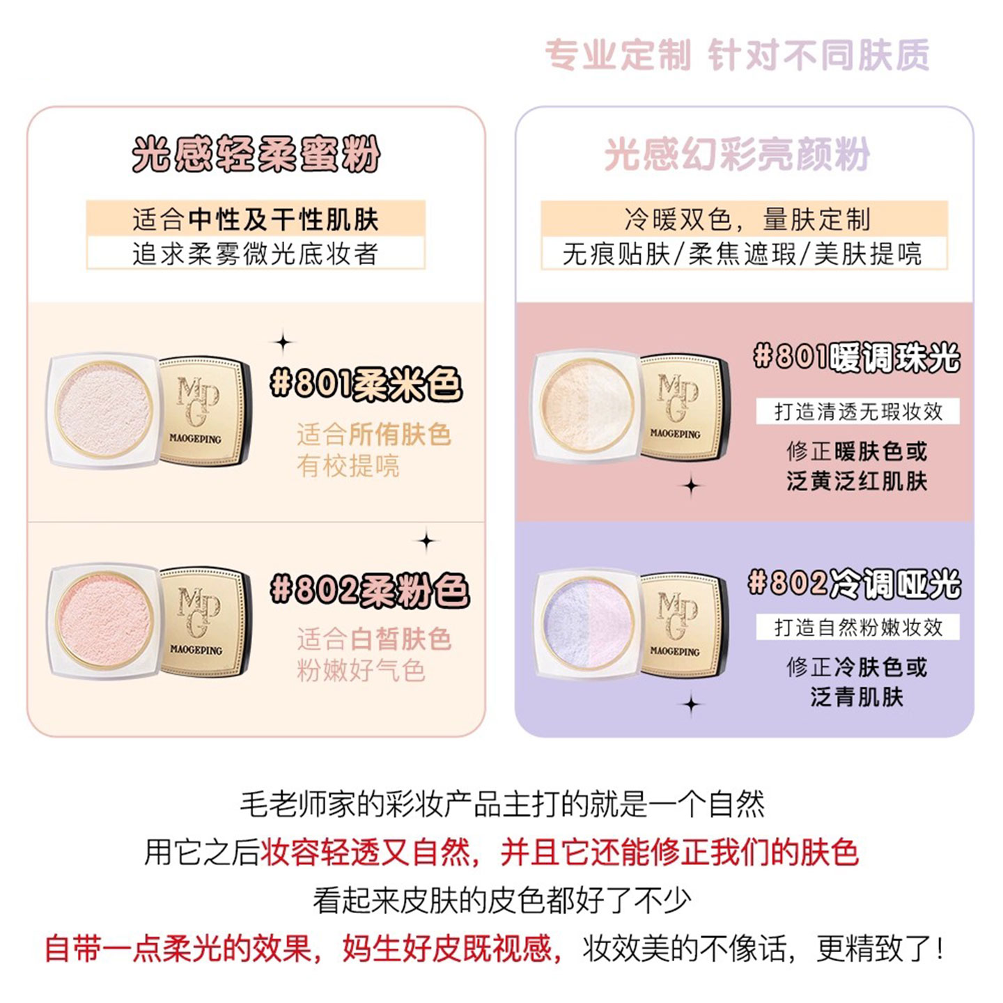自带磨皮!毛戈平双色散粉光感轻柔蜜粉哑光磨皮干皮清爽持久定妆