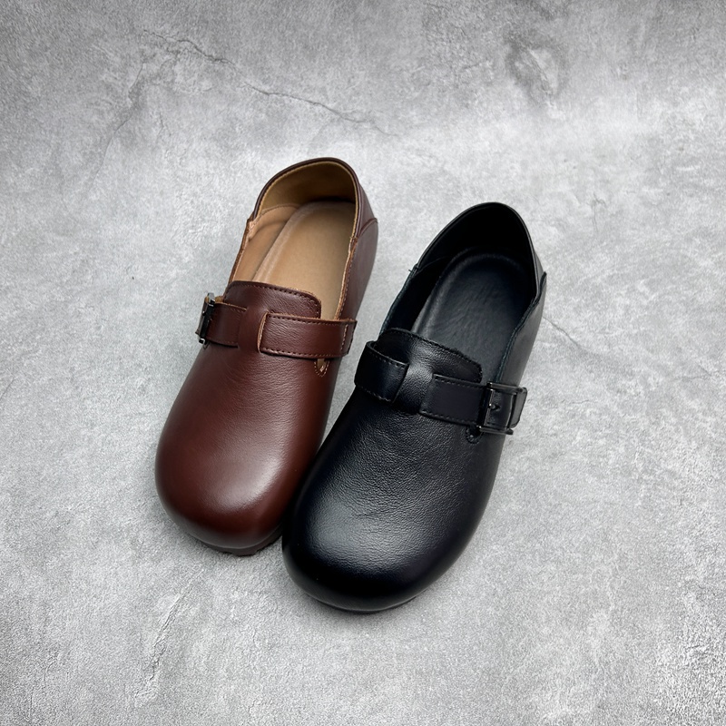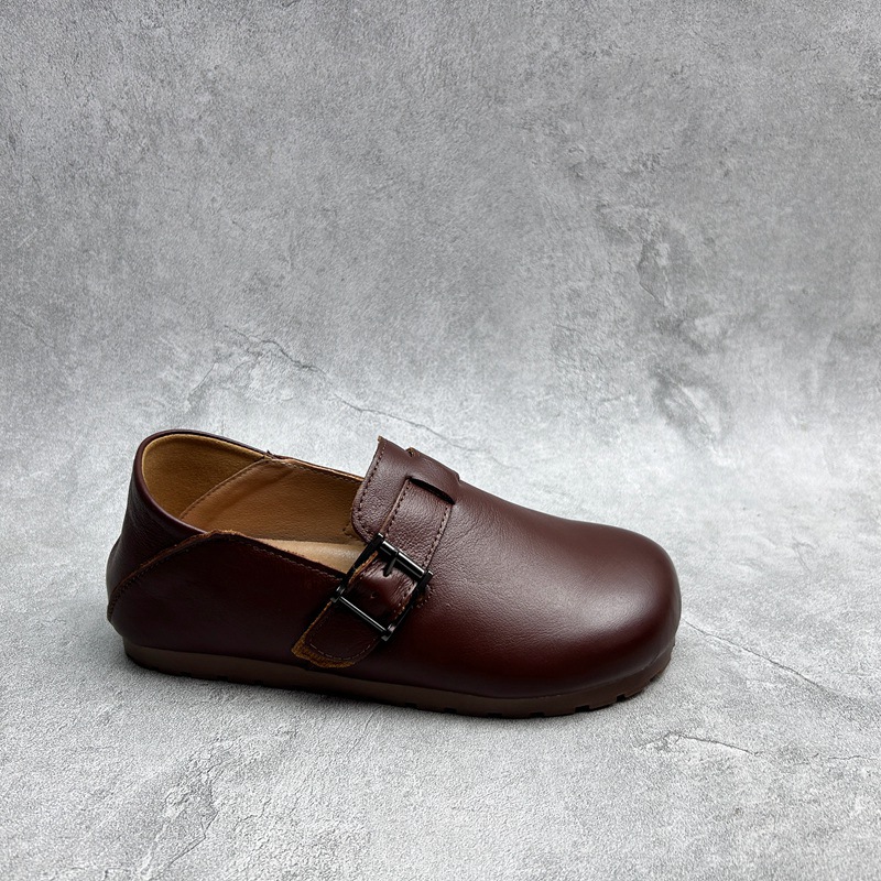 2025断码秋季真皮新款女鞋厚底休闲深口时尚牛皮勃肯鞋百搭女单鞋