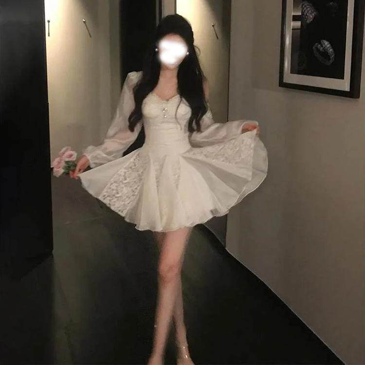 微胖mm法式温柔轻奢蕾丝连衣裙女秋冬新款设计感长袖短裙小礼服