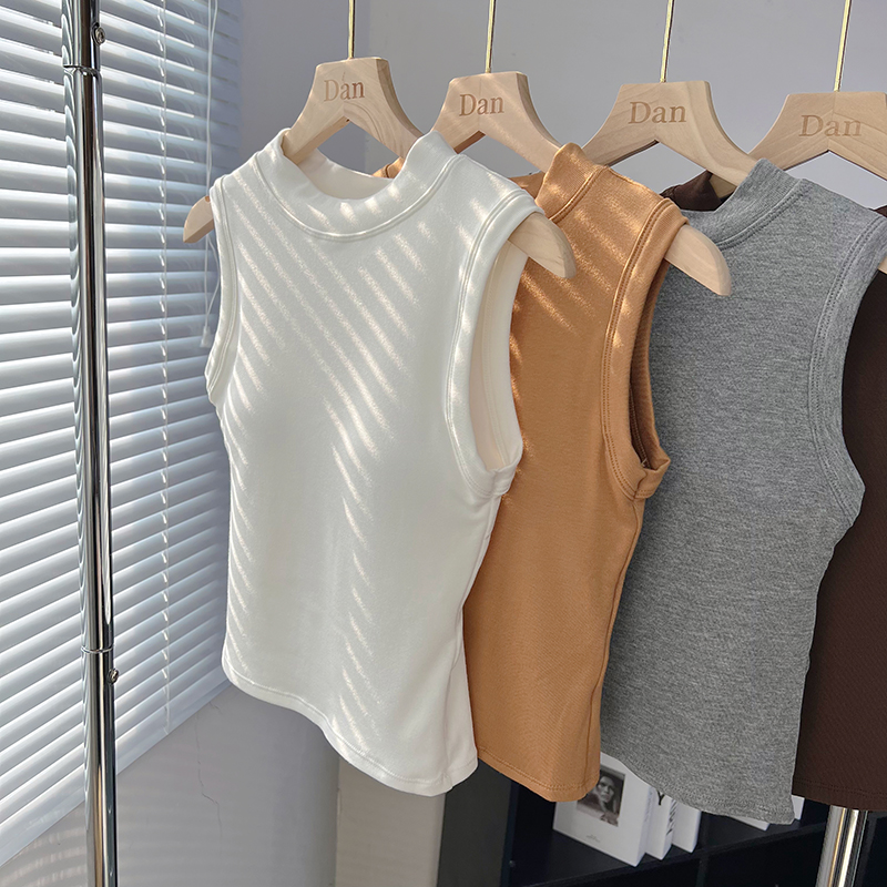 白色半高领吊带背心女内搭秋冬带胸垫新款无袖外穿磨毛打底衫上衣