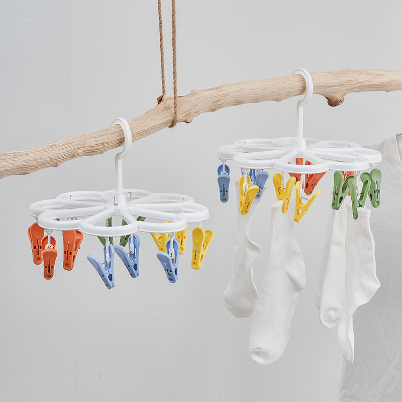 日本JSK彩虹花朵形晾衣架12夹多夹子衣架阳台晾晒架晒袜子内衣架