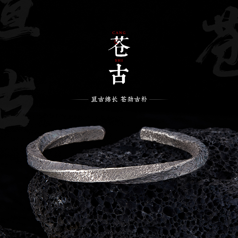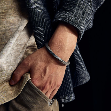 手工定制【苍古】手镯男复古简约999纯银莫比乌斯环维京战镯镯子