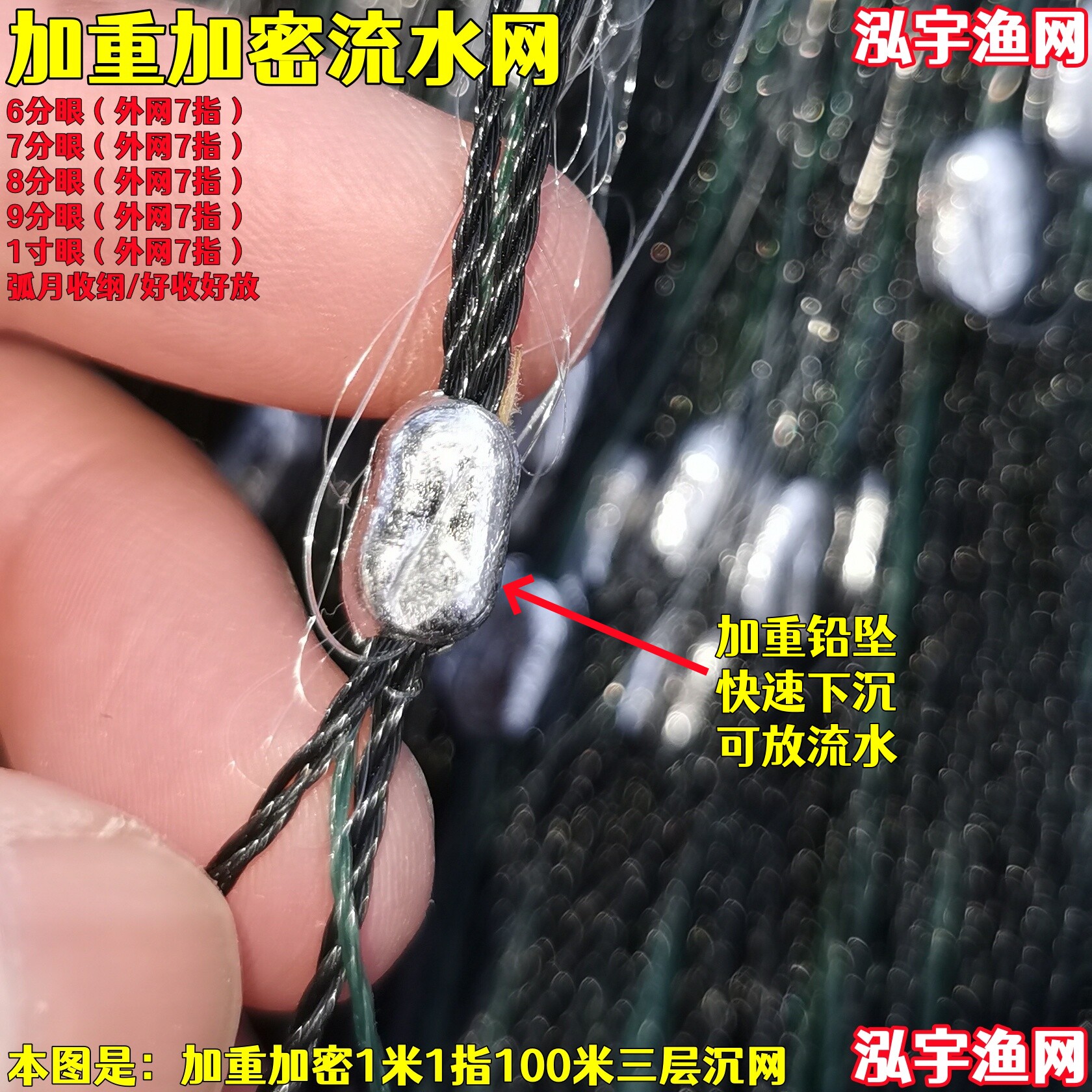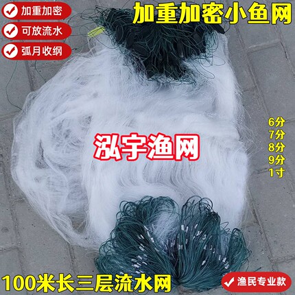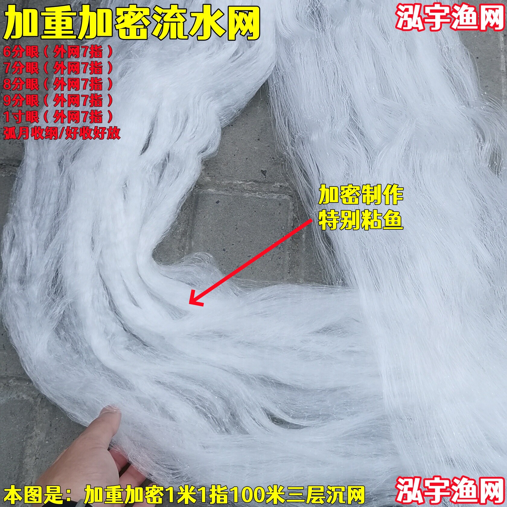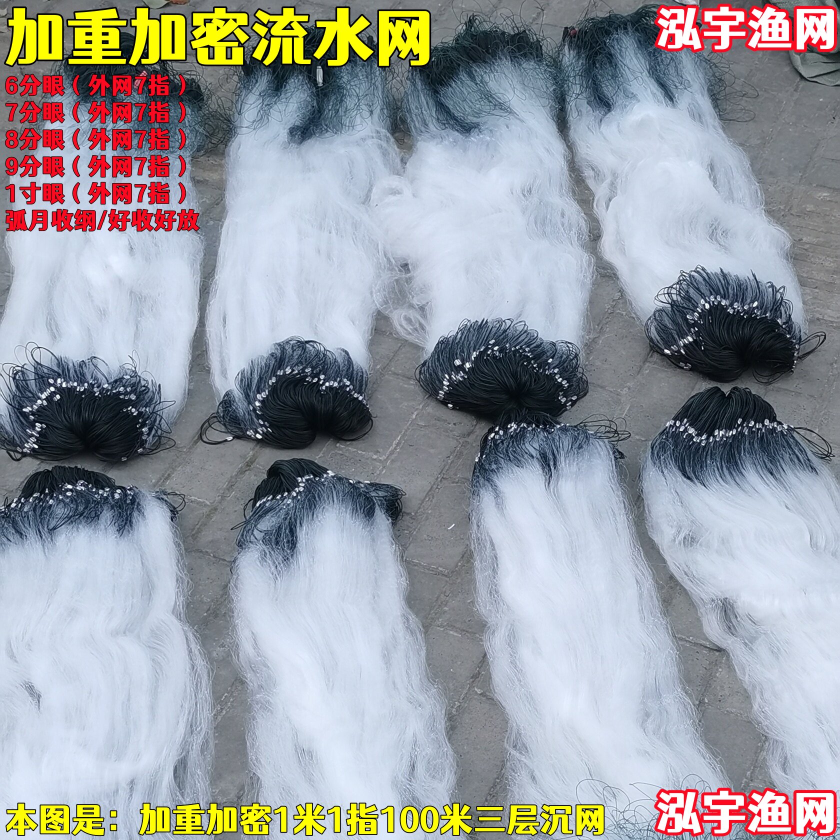 加重加密流水网6分7分8分100米长三层渔网粘网丝网捕鱼网小鱼网