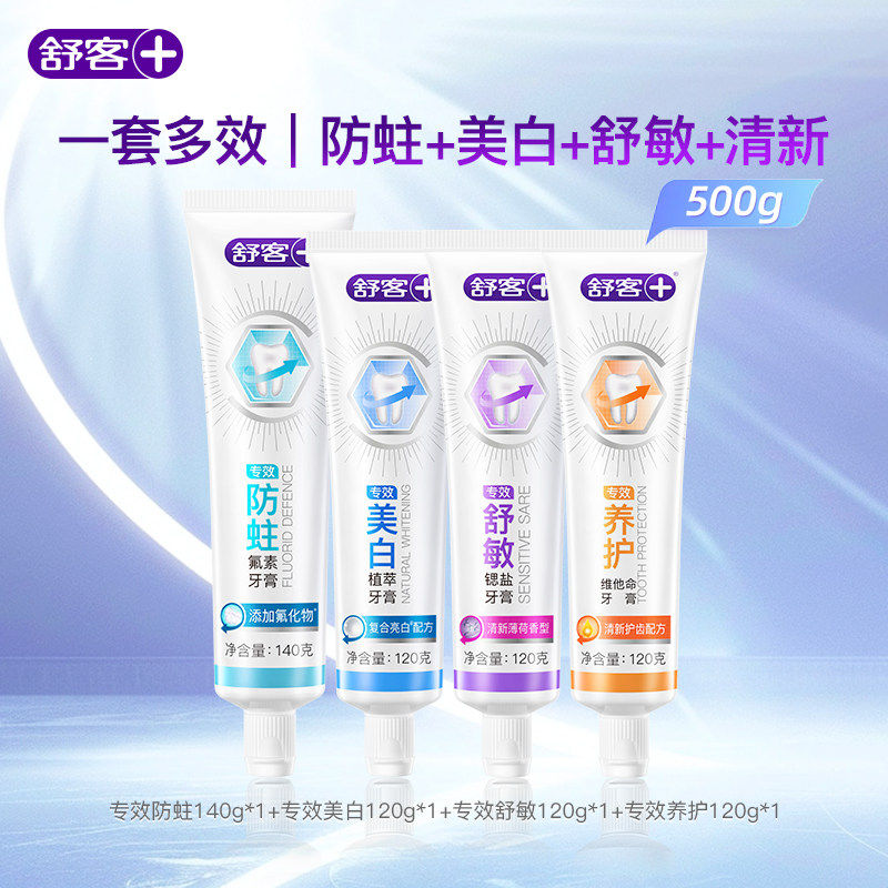 舒客牙膏防蛀舒敏成人亮白去黄牙垢清新口气男女士家庭实惠装正品