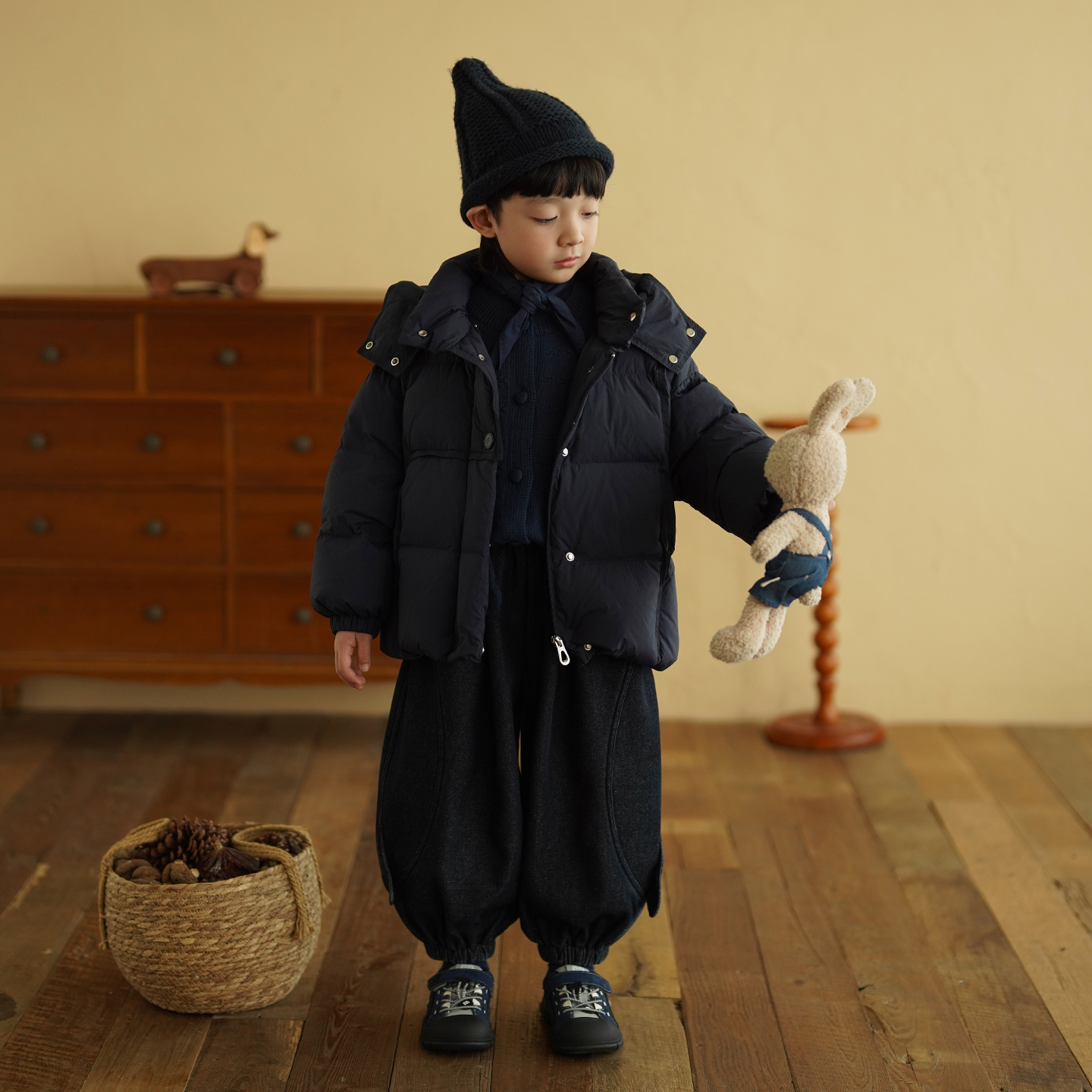 砚台家男童黑色连帽羽绒服2025冬季新款百搭儿童防水外套保暖加厚