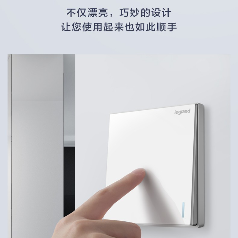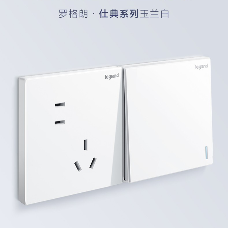 罗格朗仕典玉兰白带荧光开关插座斜五孔二三插电脑电视插86型面板