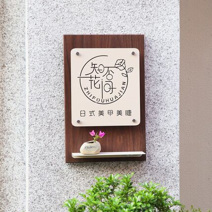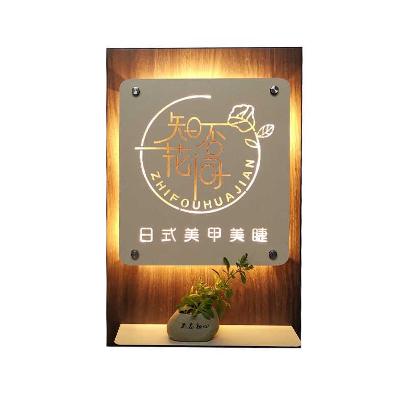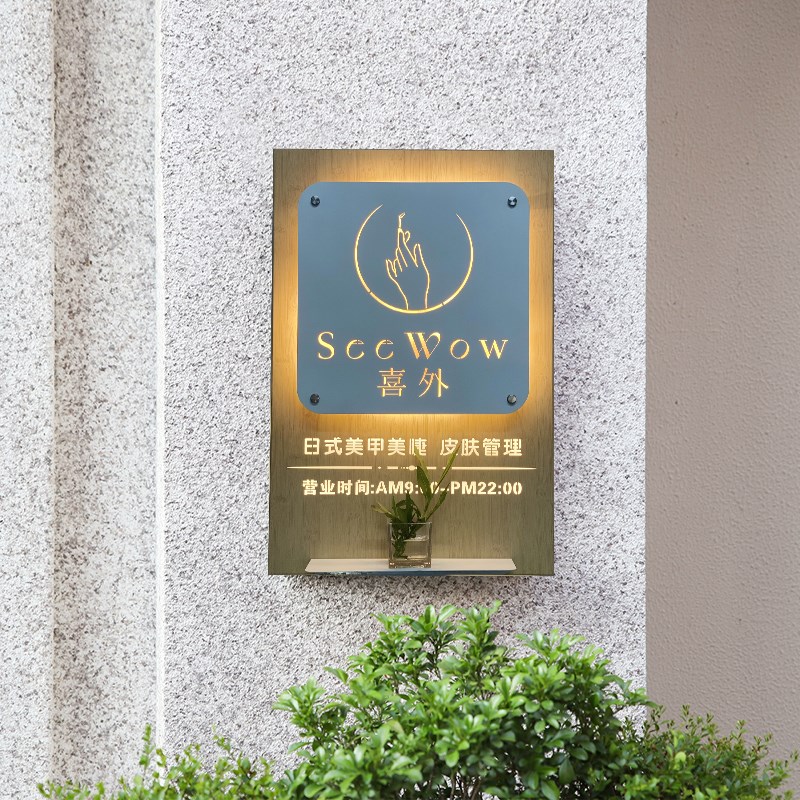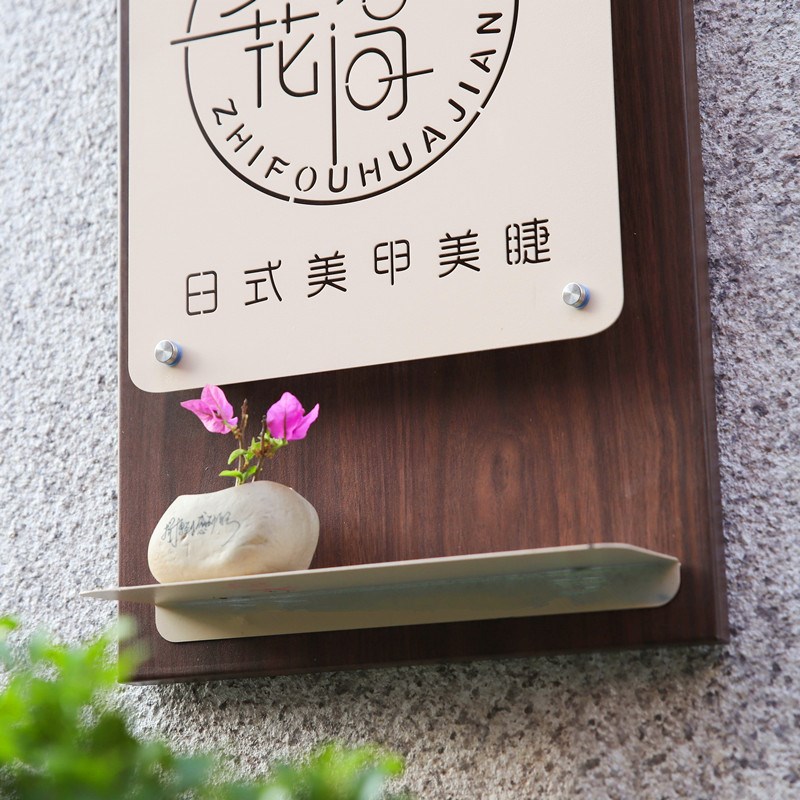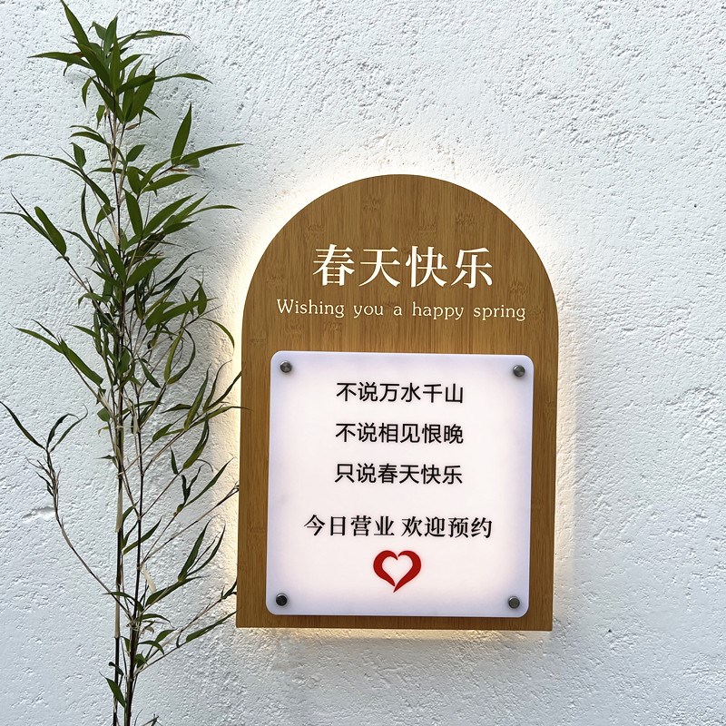 营业时间广告牌铁艺金属个性木纹美甲店民宿酒店发光门牌灯牌定制