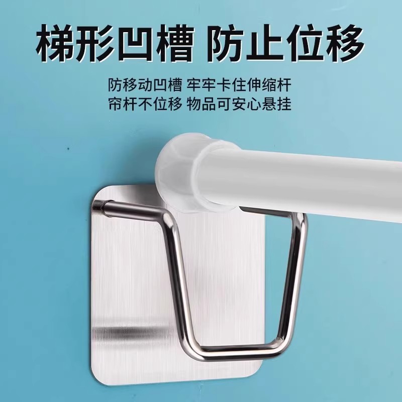 伸缩杆托免打孔壁挂式窗帘杆固定座门帘挂钩夹横杆固定器支架配件