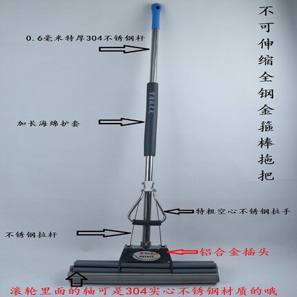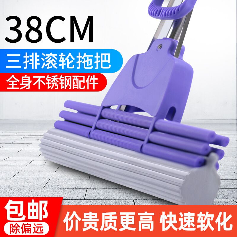 全钢三排滚轮不锈钢配件海棉吸水拖把家用懒人免手洗墩布省力拖布