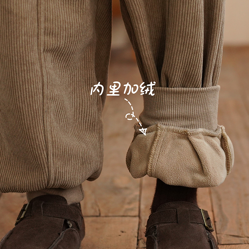 砚台家童装男童一体绒休闲裤儿童束脚裤宝宝加绒裤子秋冬款卡其色