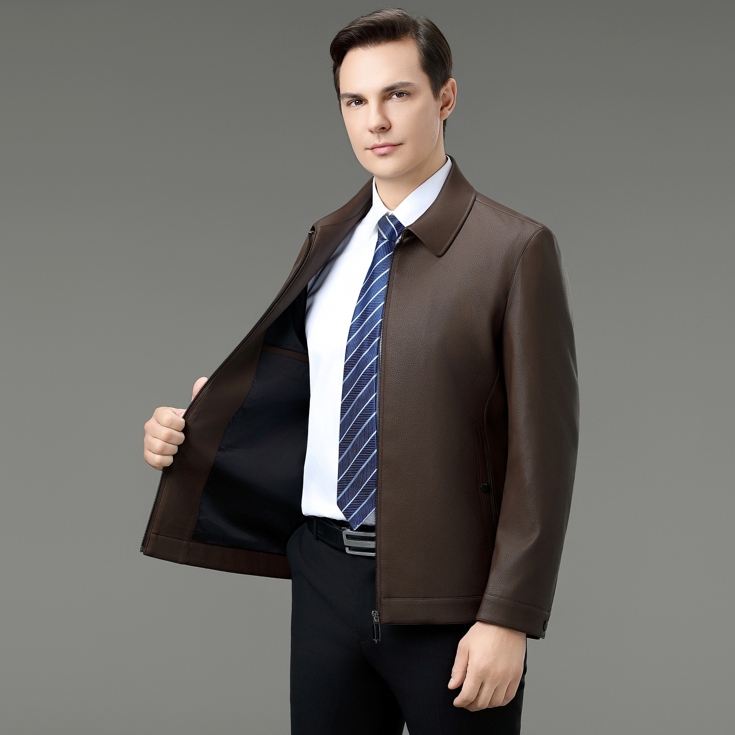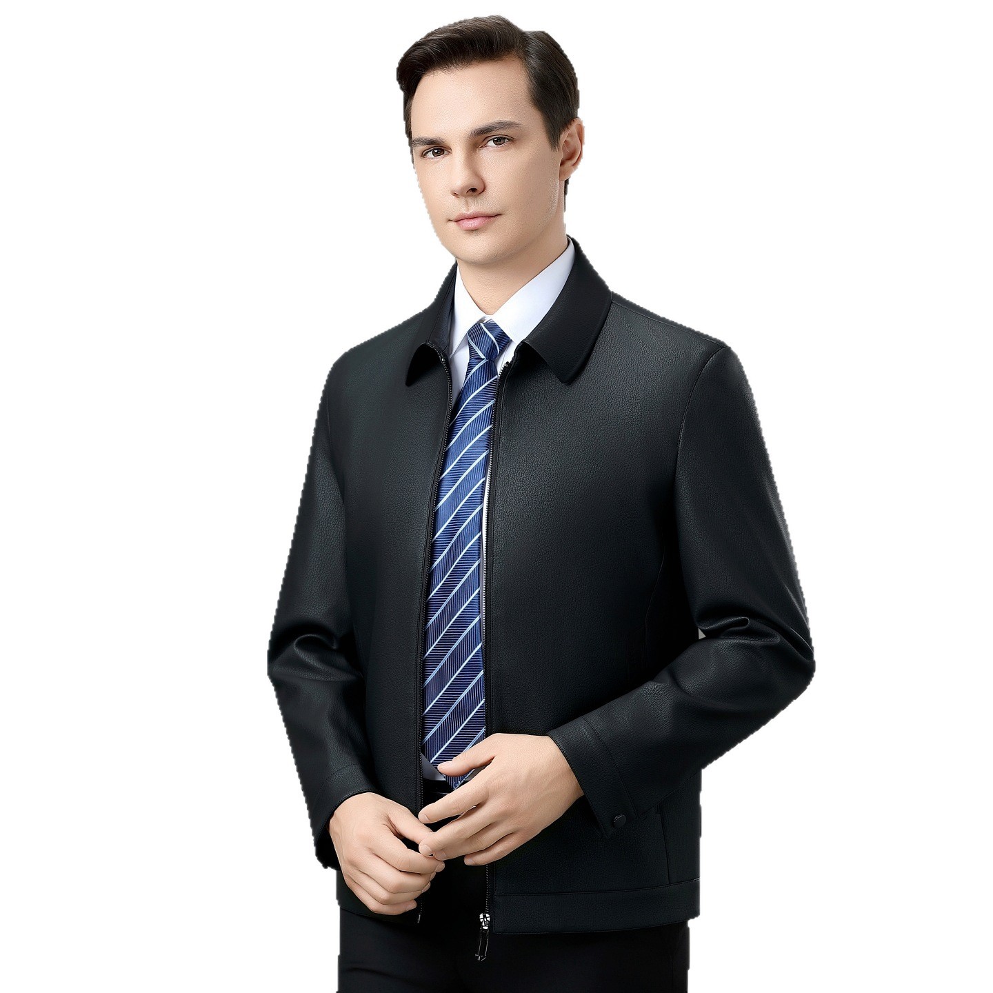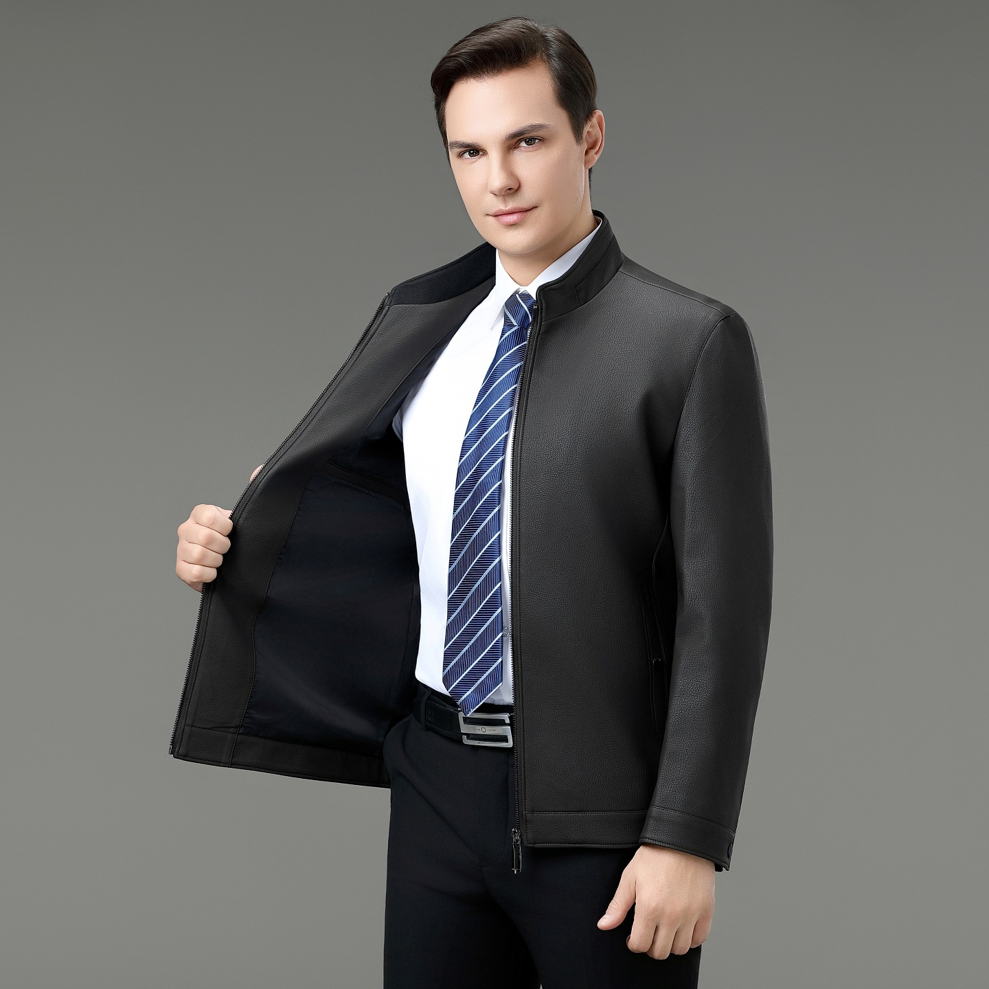 日本品质秋冬男士真皮皮衣男式夹克中年翻立领绵羊皮短款加绒茄克
