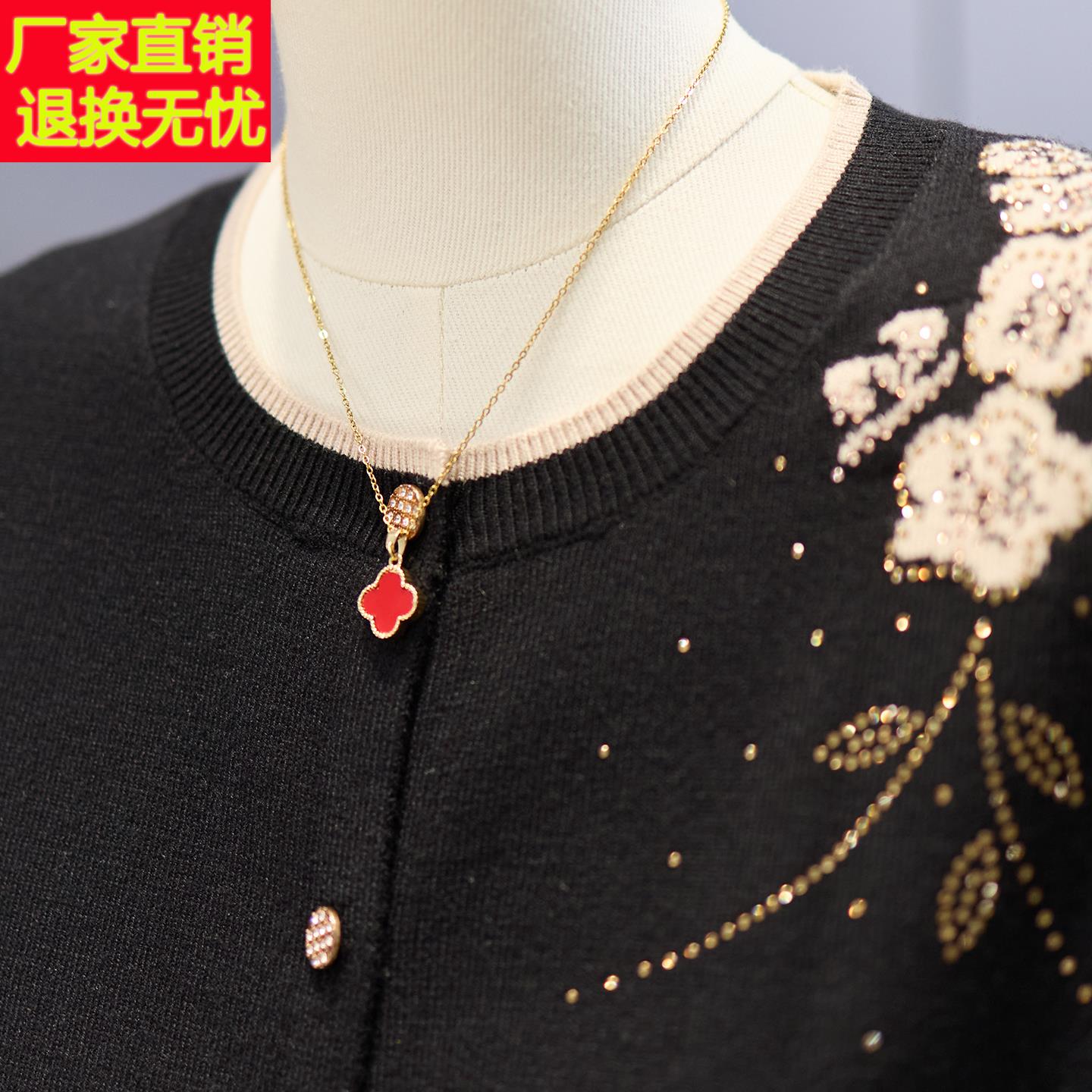 洋气妈妈秋装针织开衫中年女装提花上衣服中老年春秋薄款毛衣外套