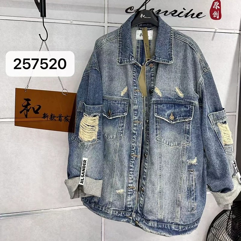 胖妹妹破洞反穿牛仔外套宽松显瘦