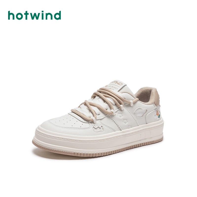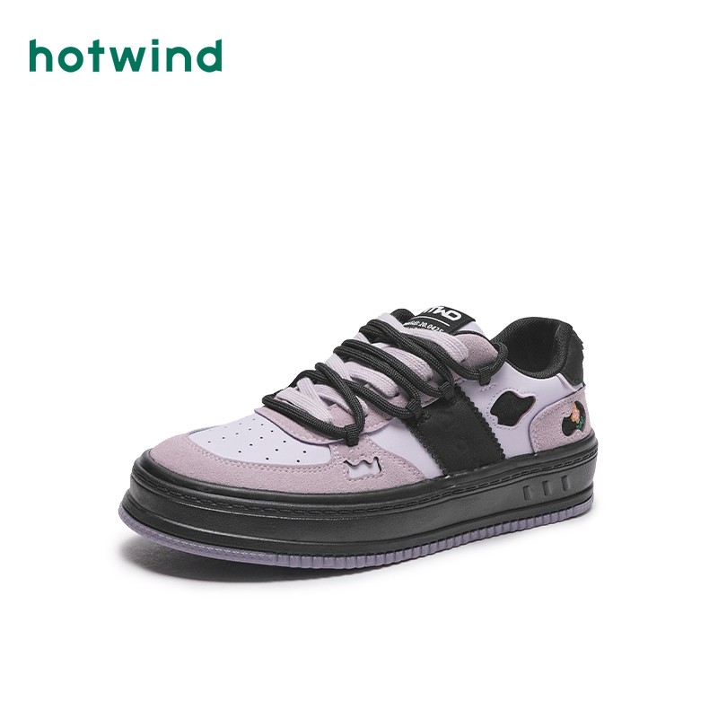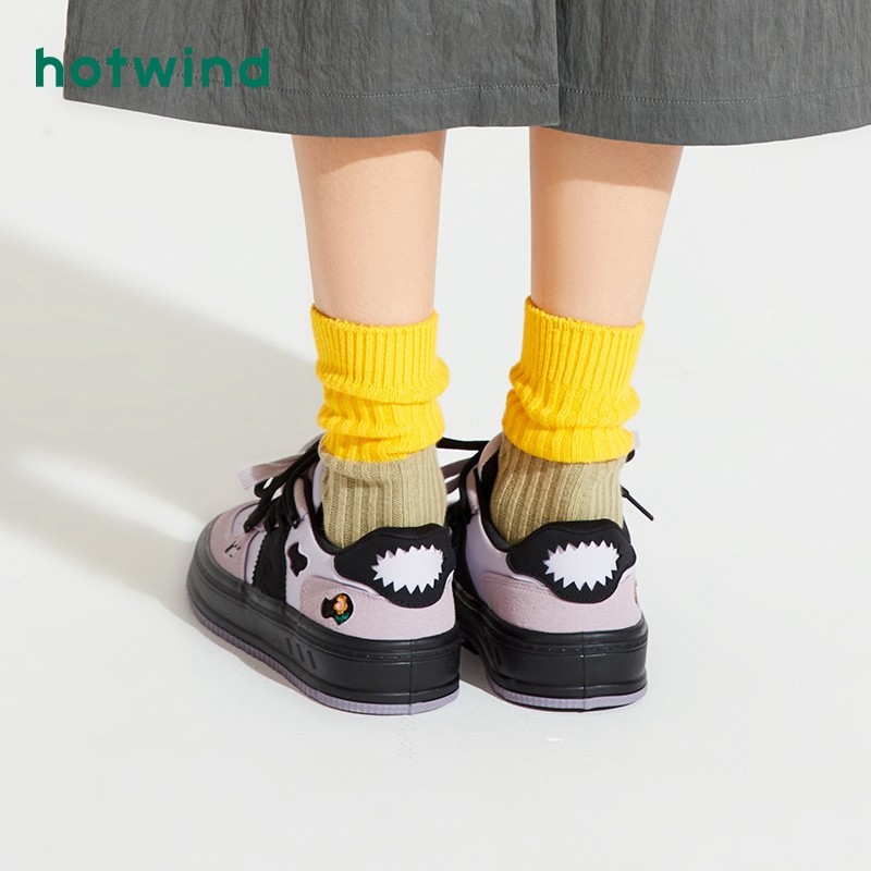 热风秋季新款女士复古潮流个性休闲板鞋厚底拼色多巴胺女鞋