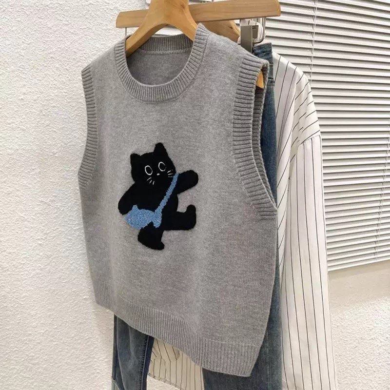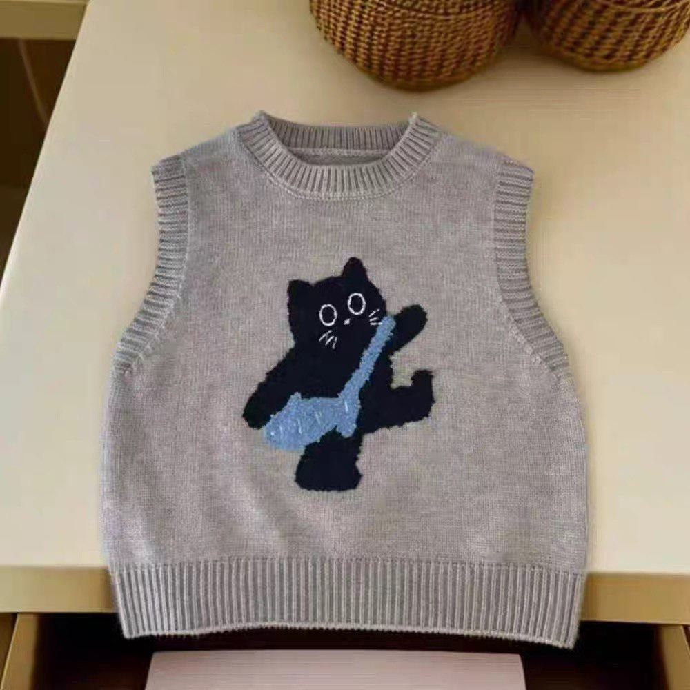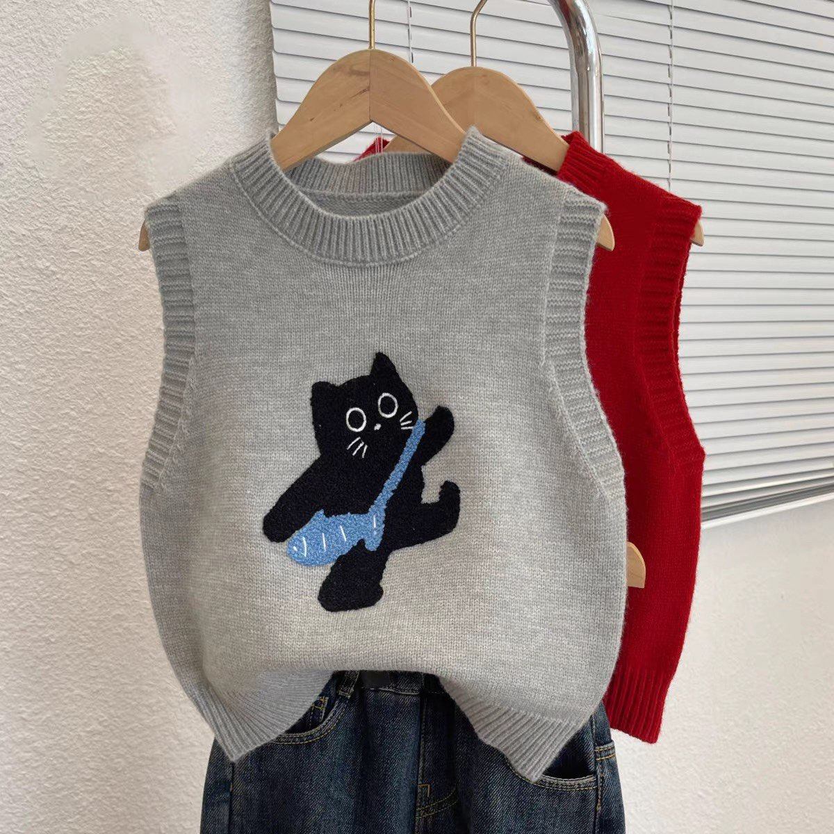 儿童毛衣2025秋冬新款女童坎肩可爱小猫背心男宝时尚外穿圆领针织