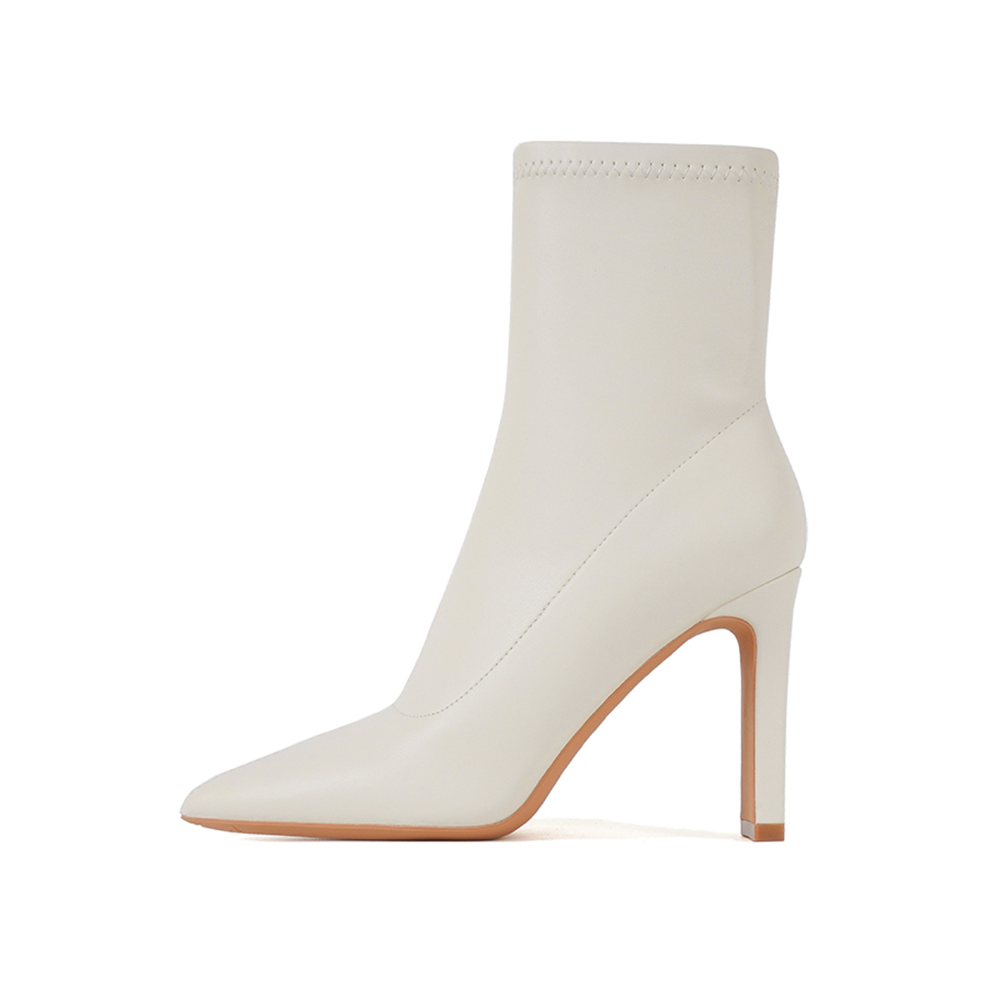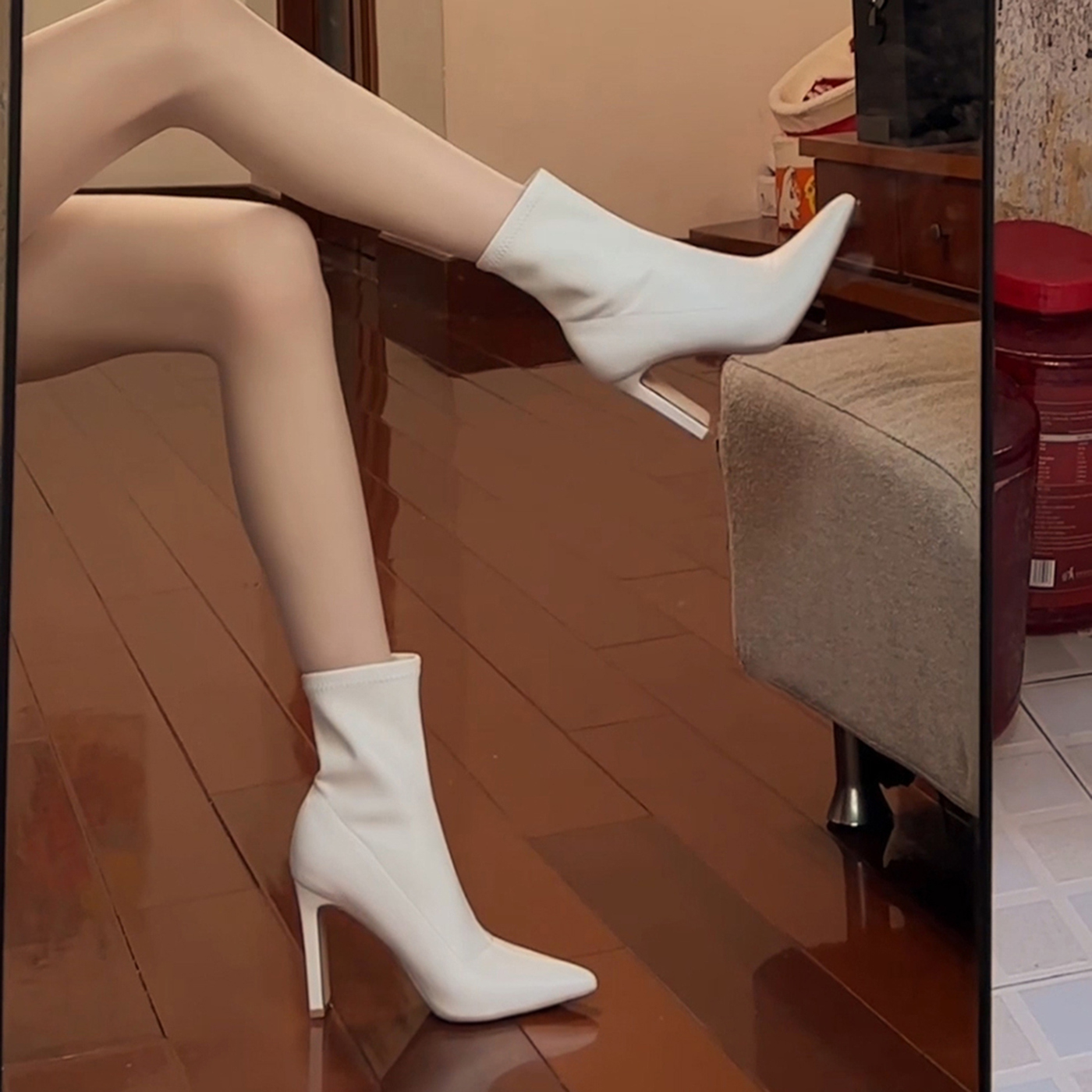 尖头高跟鞋短靴女2025年粗跟绒面弹力瘦瘦靴裸靴女秋冬百搭袜靴女