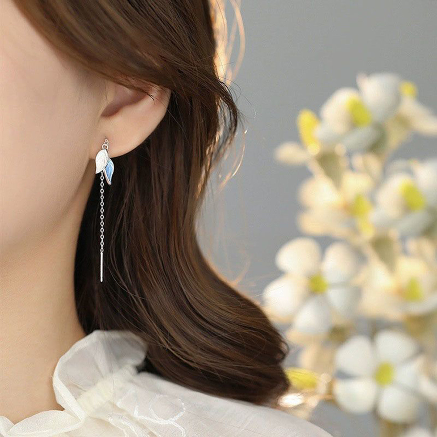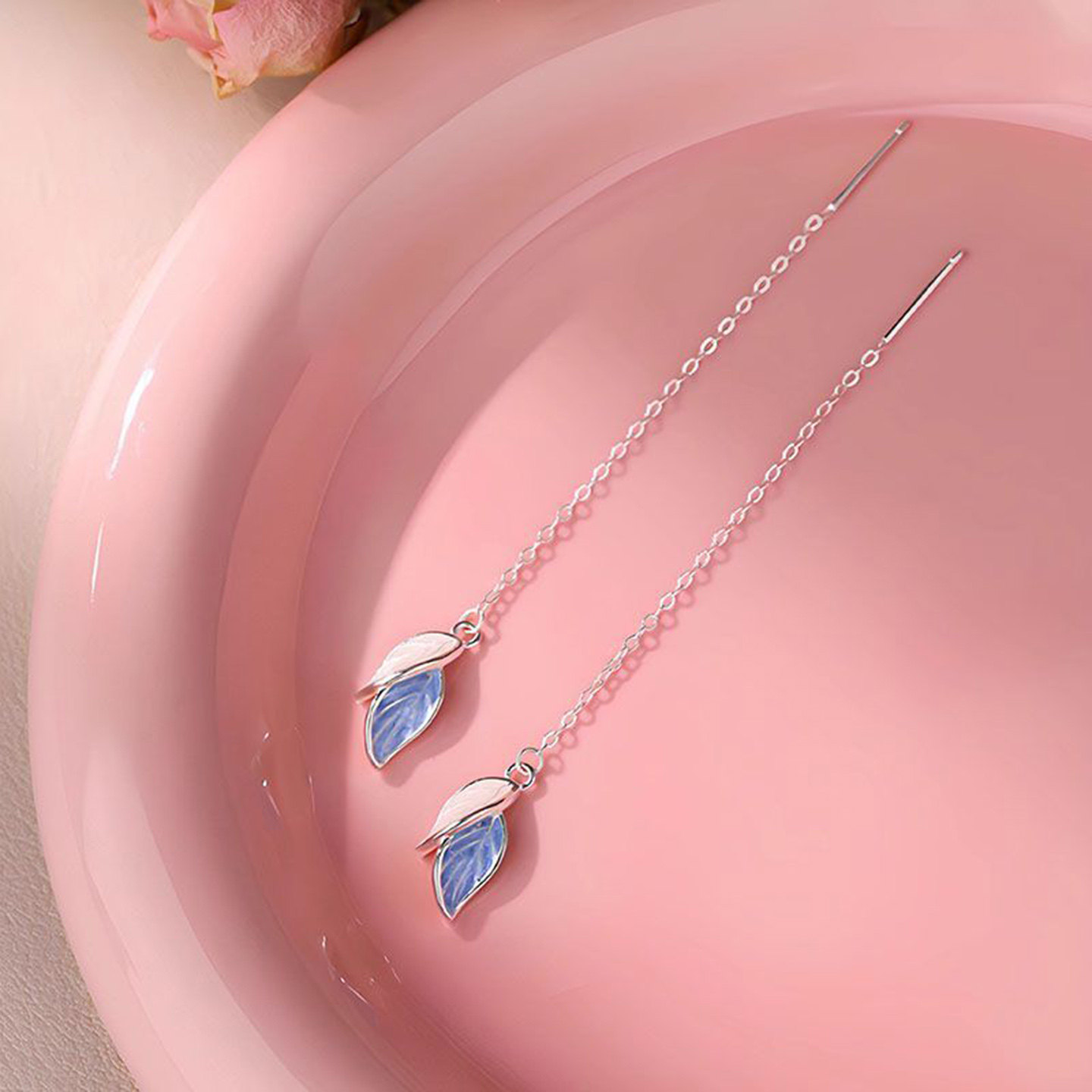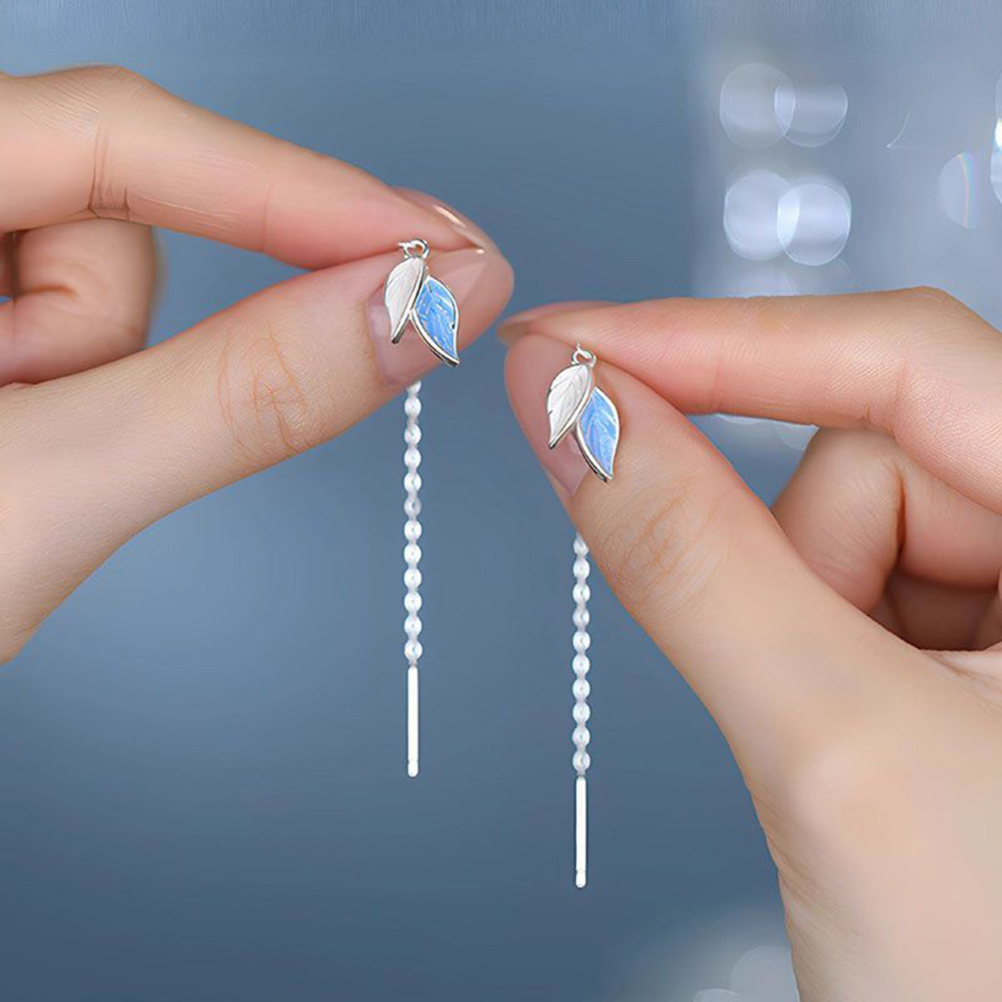 925银针树叶耳线女轻奢小众设计气质长款流苏耳环小清新显瘦耳饰