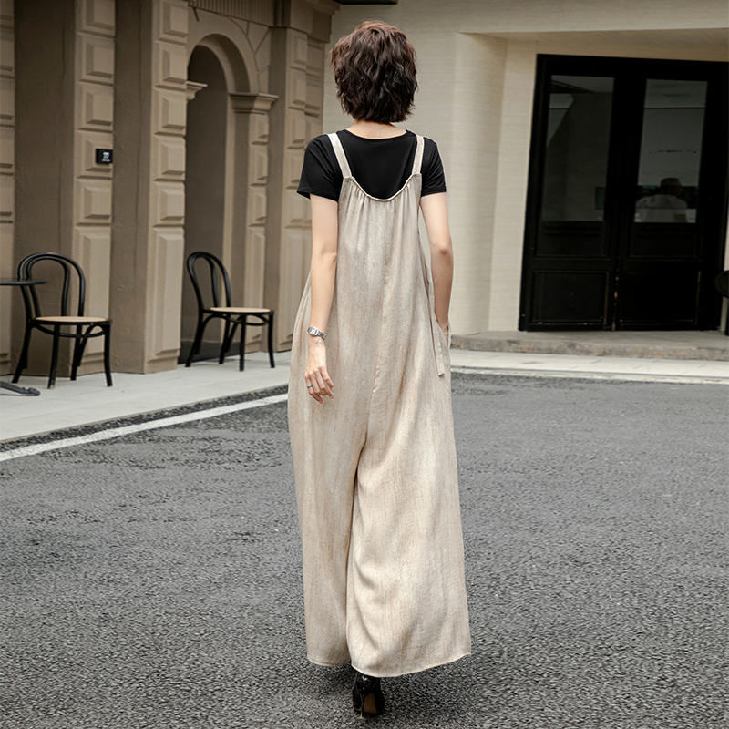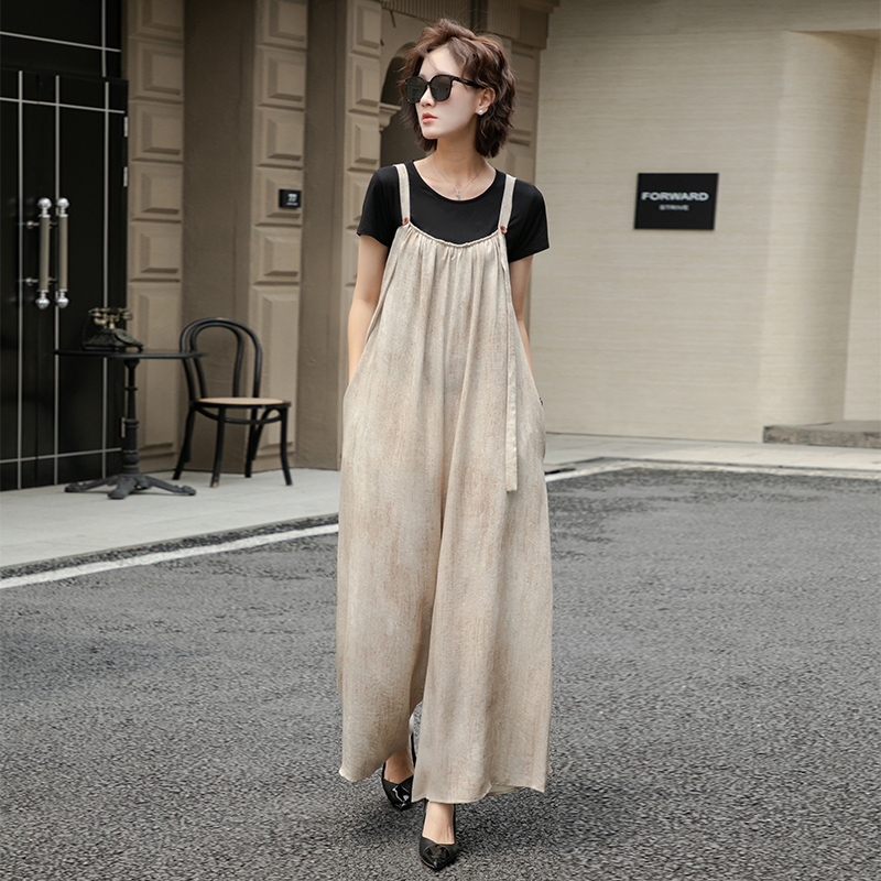 燕麦色背带裤女夏薄款2025新款大码女胖mm显瘦遮肚子阔腿连衣裤裙