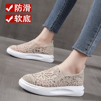 老北京布鞋女时尚休闲单鞋一脚蹬网面渔夫鞋平底舒适孕妇鞋子春夏