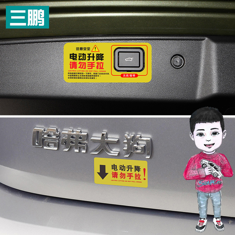 哈弗大狗改装电尾门提示贴哈佛大狗后备箱电动尾门警示贴纸外饰装