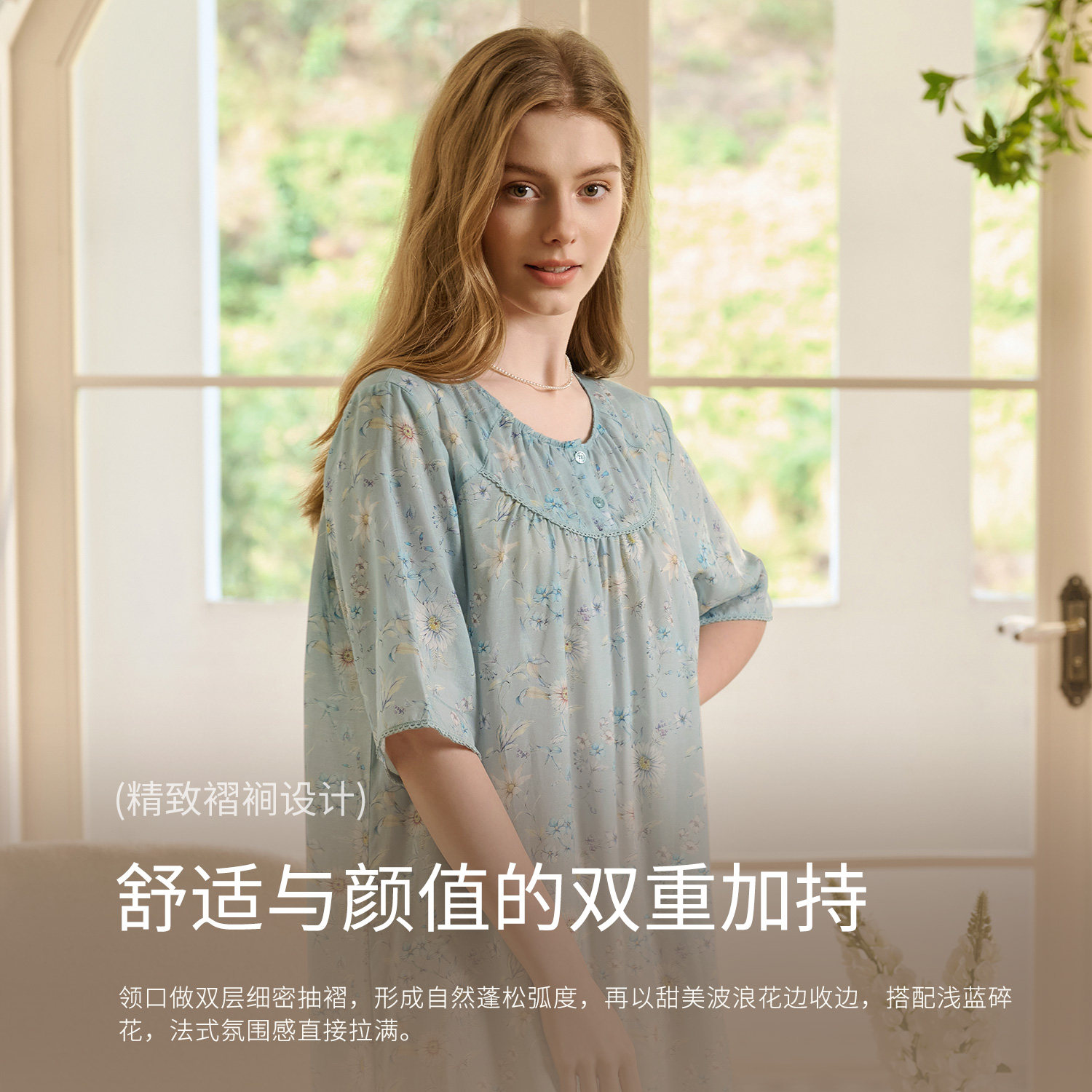 10A抗菌法式睡裙女士宽松碎花