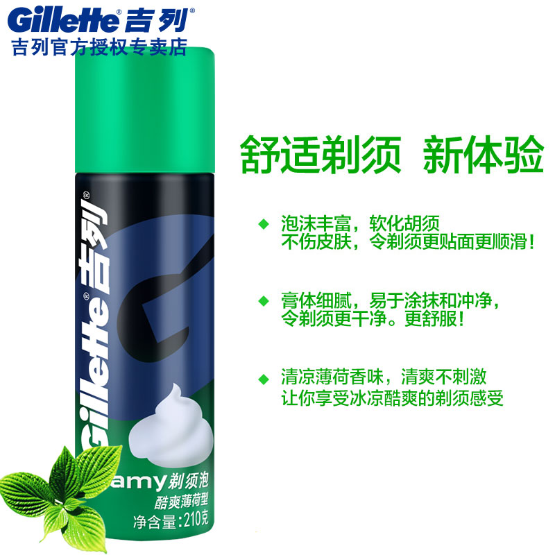 吉列剃须泡沫210g大瓶男士刮胡子泡刮胡膏啫哩剃毛膏清新薄荷