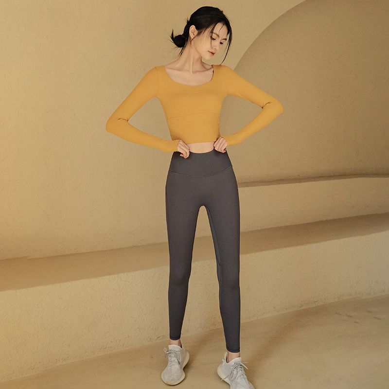 Ackdcs瑜伽服女秋季长袖显瘦速干普拉提跑步运动上衣带胸垫健身服
