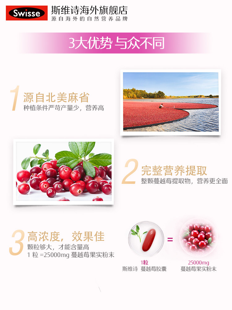 Swisse斯维诗女性保养女生健康蔓越莓精华提取物胶囊90粒维C官方