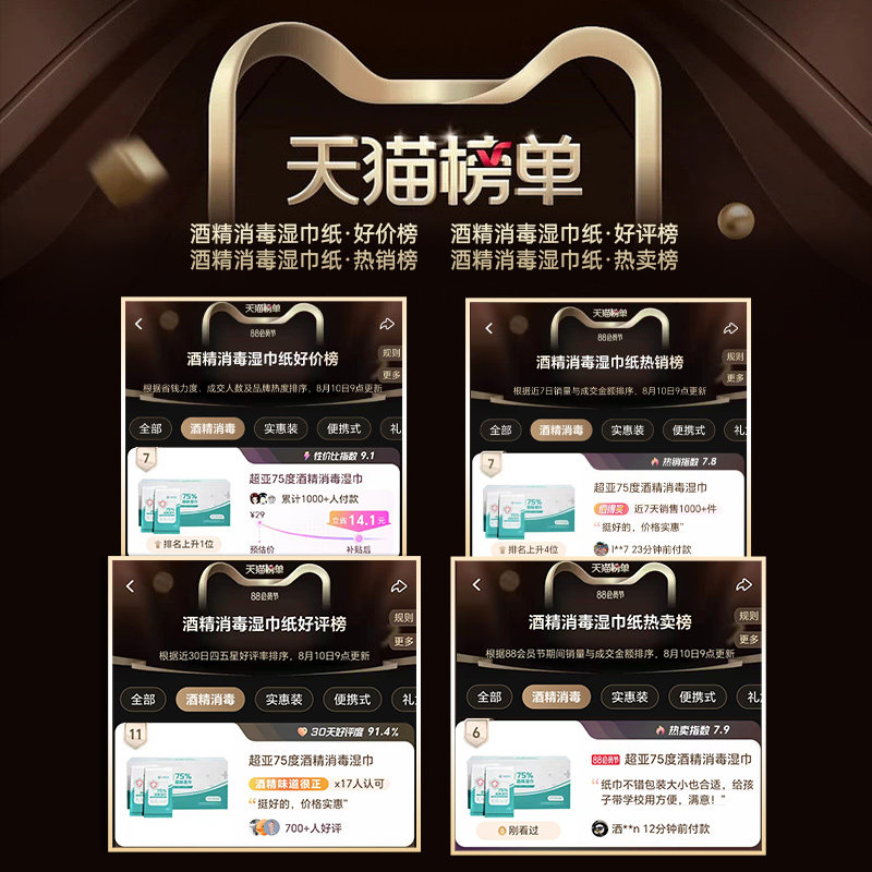 超亚75度酒精消毒湿巾纸小包便携随身装小片小学生清洁杀菌独立装