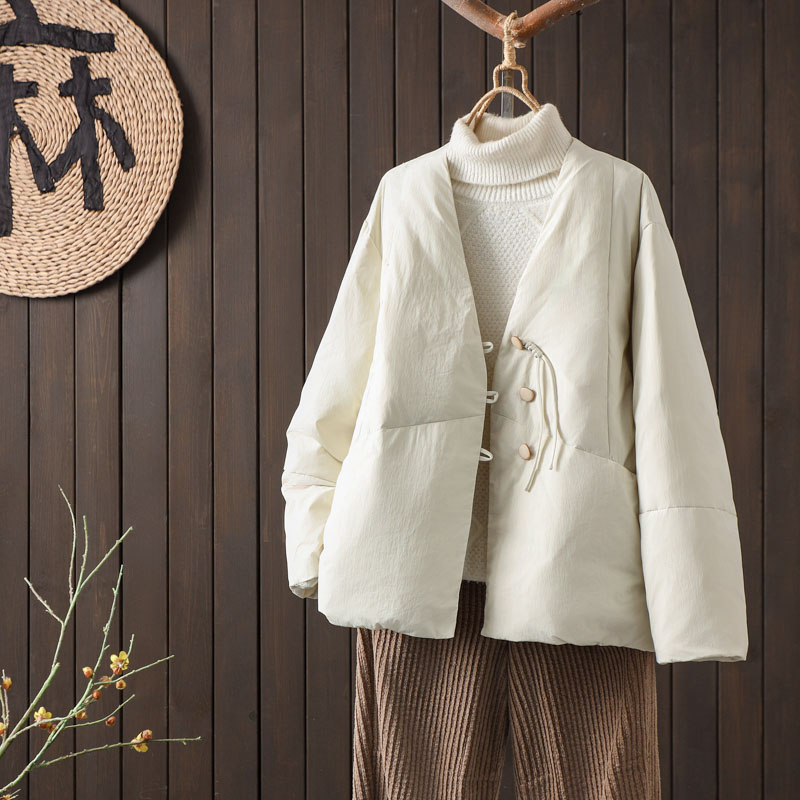 复古流苏扣羽绒服女90白鸭绒短款轻薄V领宽松显瘦气质洋气外套冬