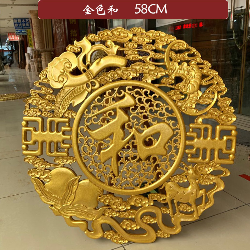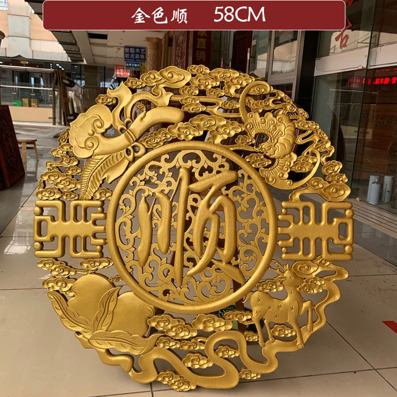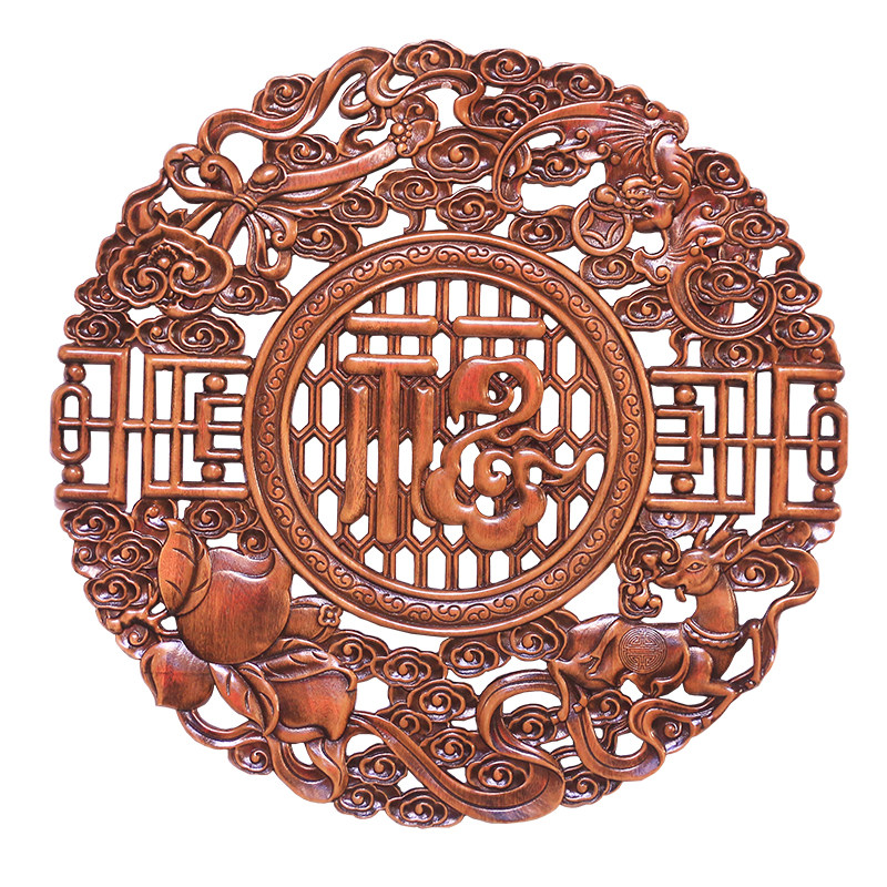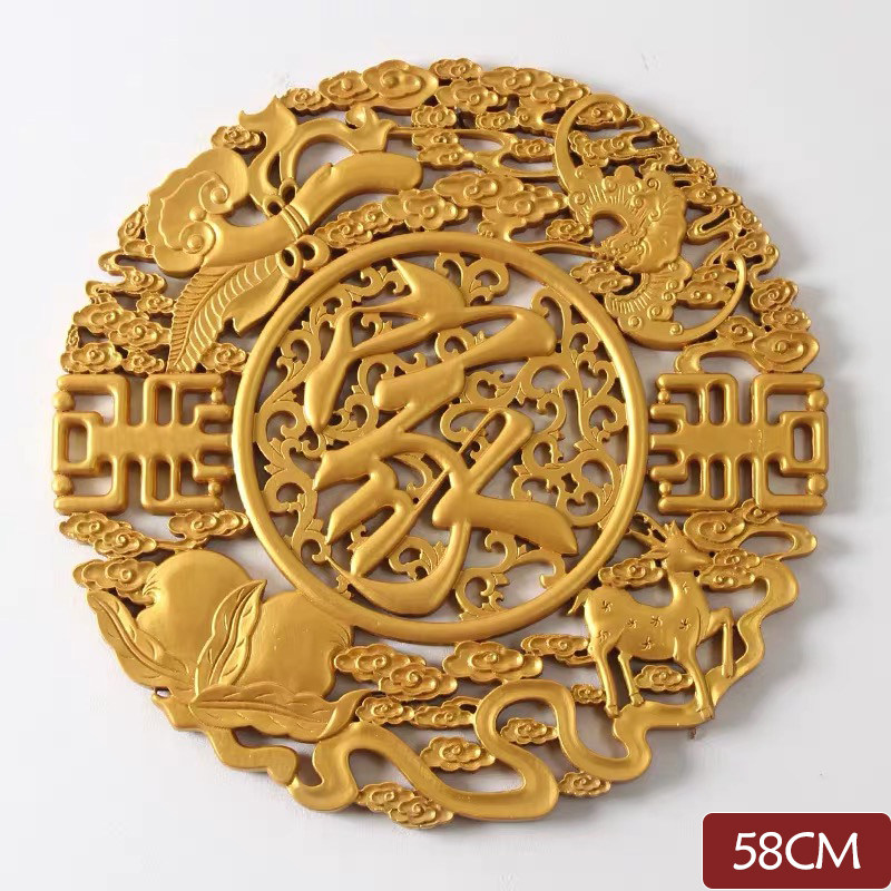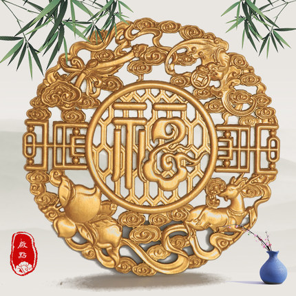 东阳木雕福字挂件中式客厅玄关背景墙挂饰香樟木圆形镂空实木花格