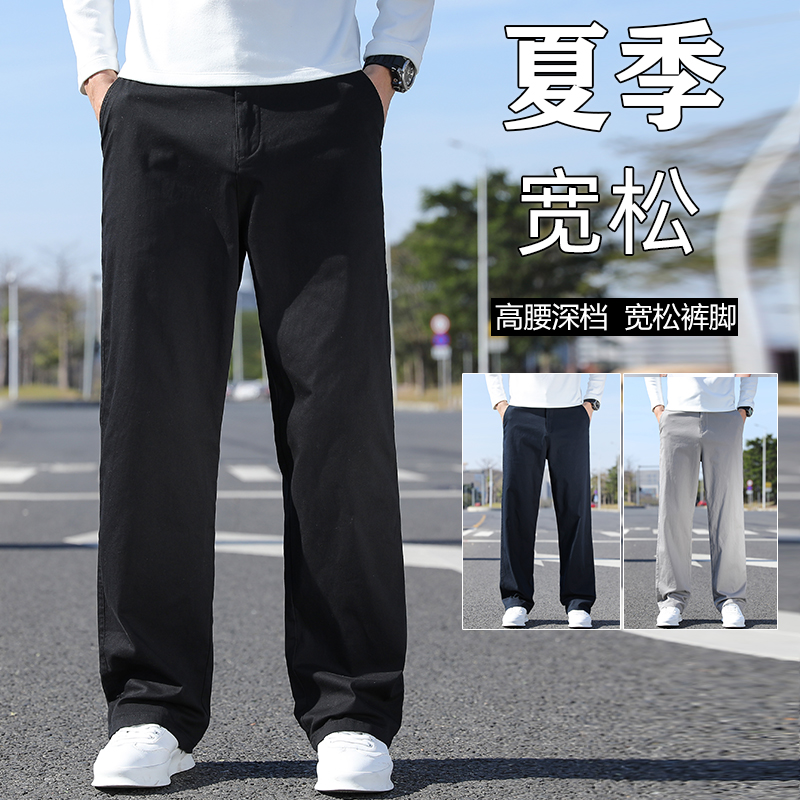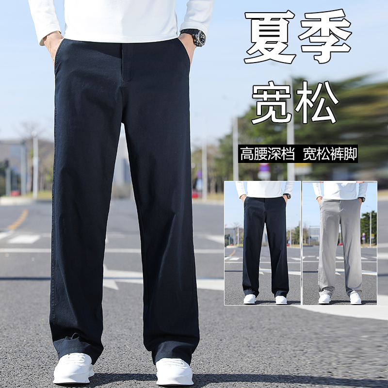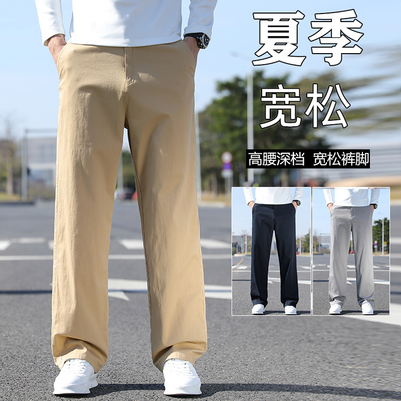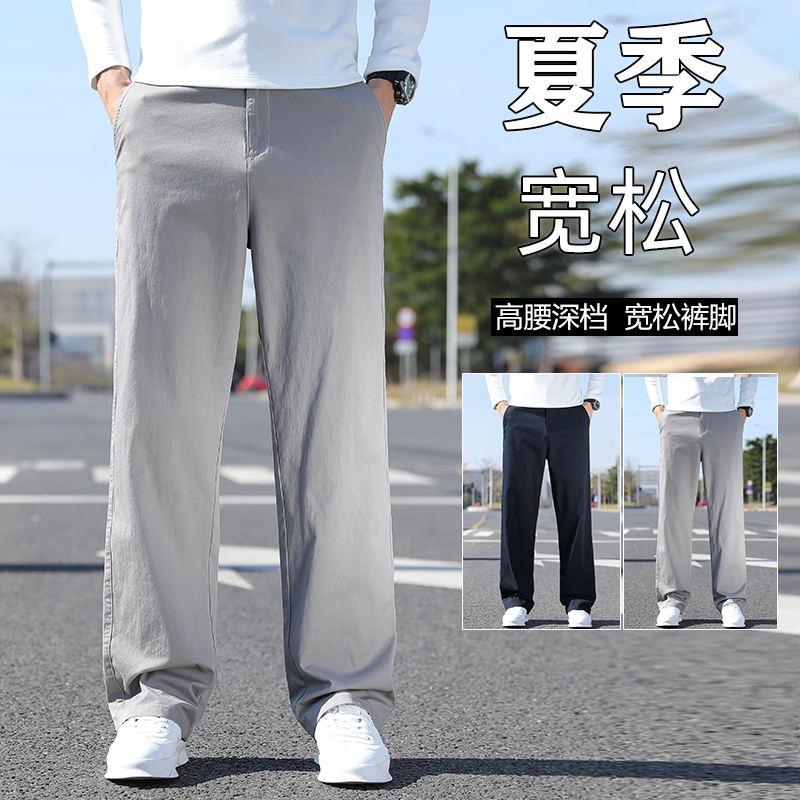 莫代尔休闲裤男薄款裤子中年男士直筒高腰长裤宽松夏季男裤爸爸装
