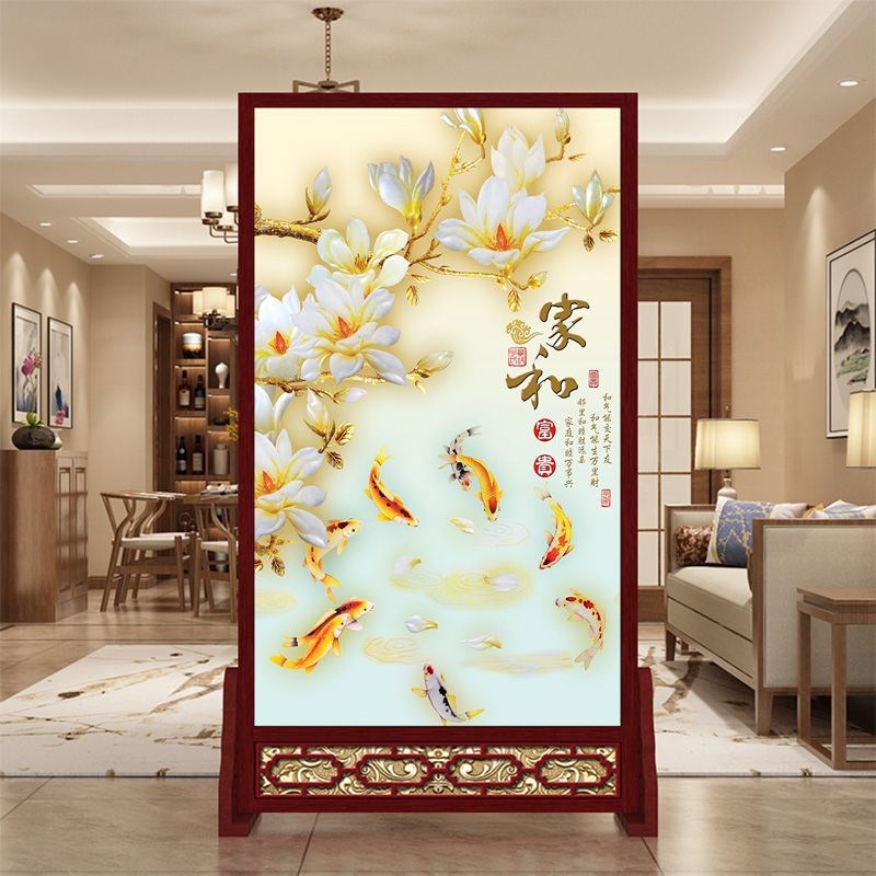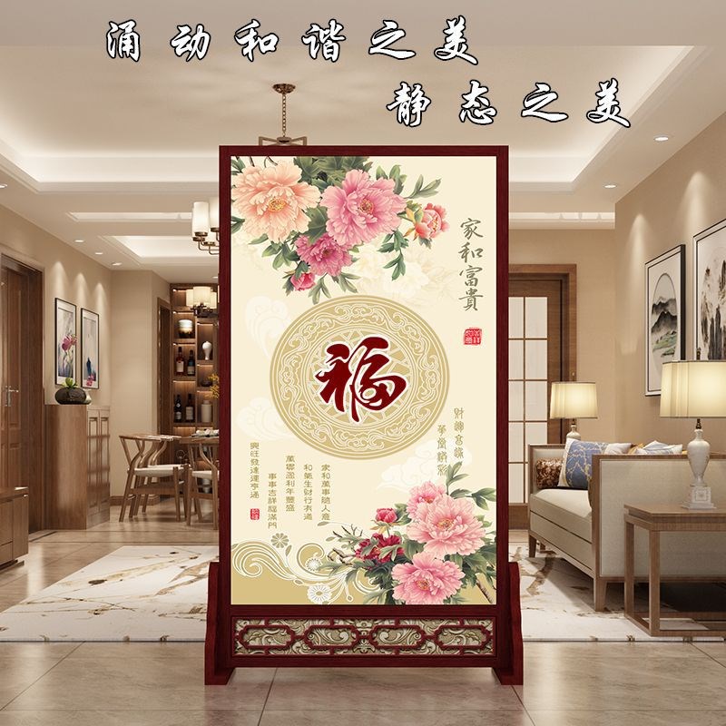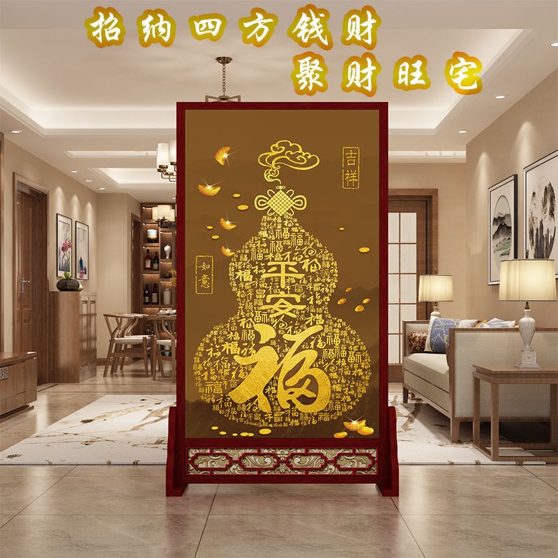 新中式入户屏风隔断客厅玄关现代简约布艺办公室双面简易实木座屏
