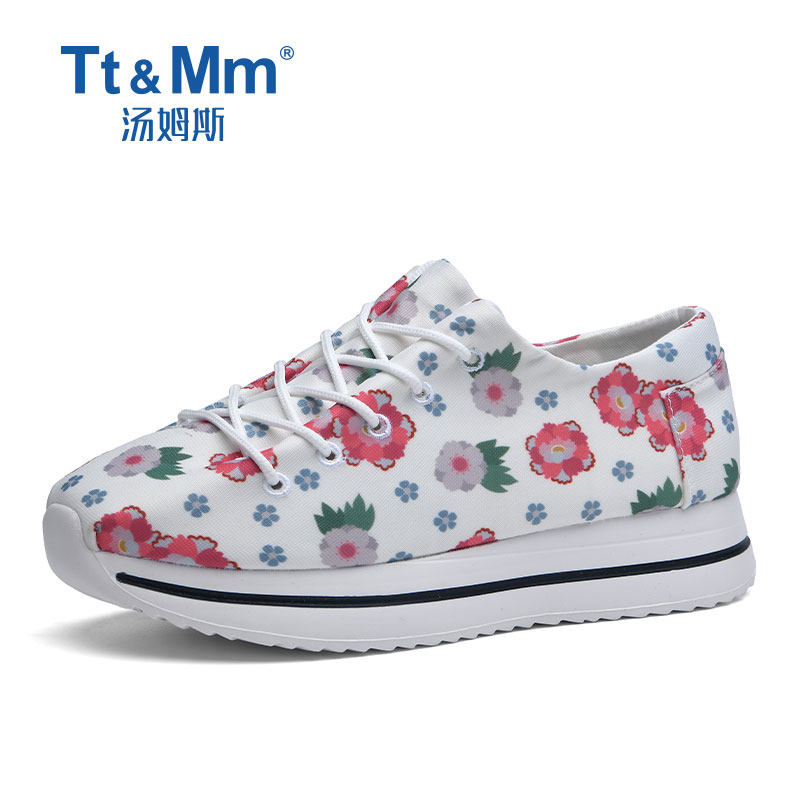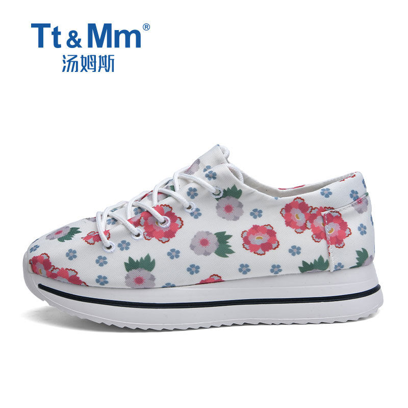 Tt&Mm/汤姆斯港风小众厚底帆布鞋女韩版松糕夏季圆头增高休闲布鞋