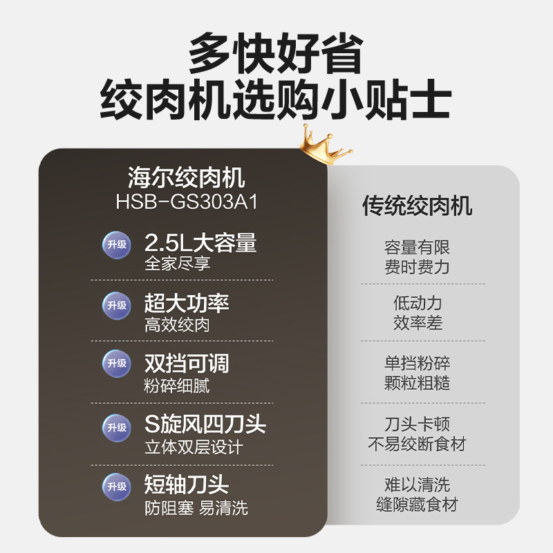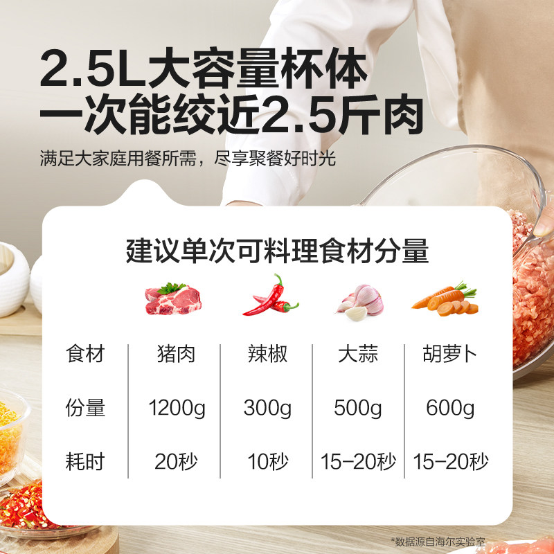 海尔绞肉机家用碎肉馅碎菜辅食一机三用多功能小型搅拌机新款厨房
