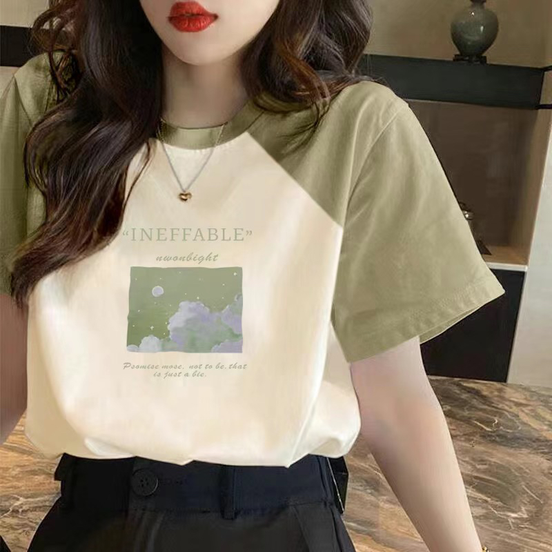 复古果绿色纯棉短袖T恤女2025夏季新款宽松百搭小众独特上衣ins潮