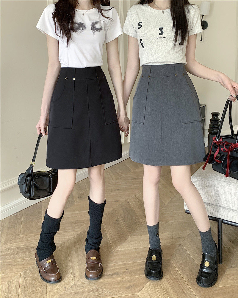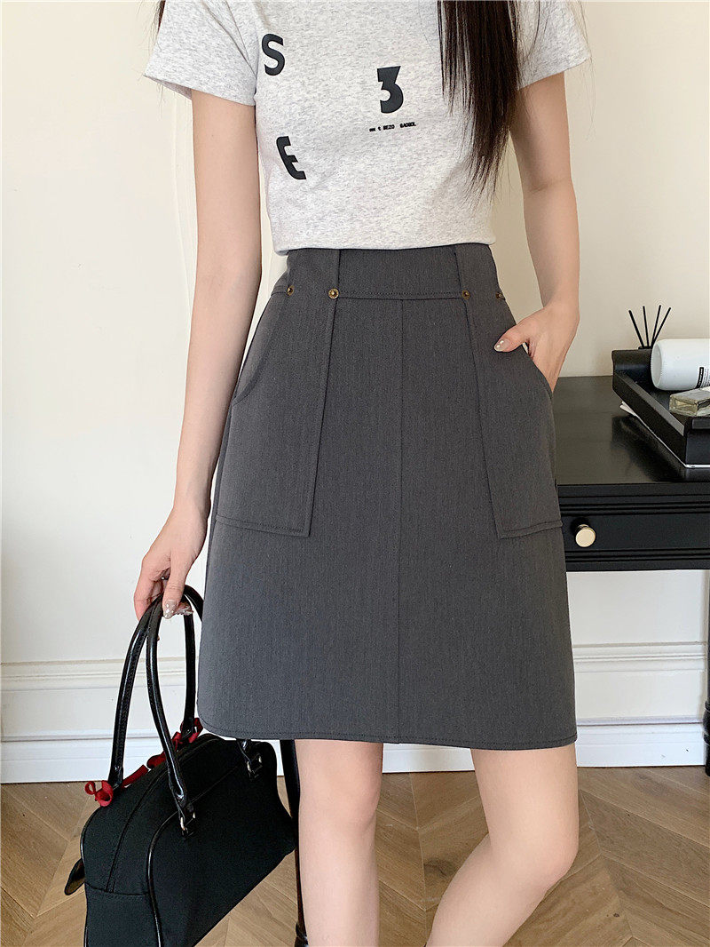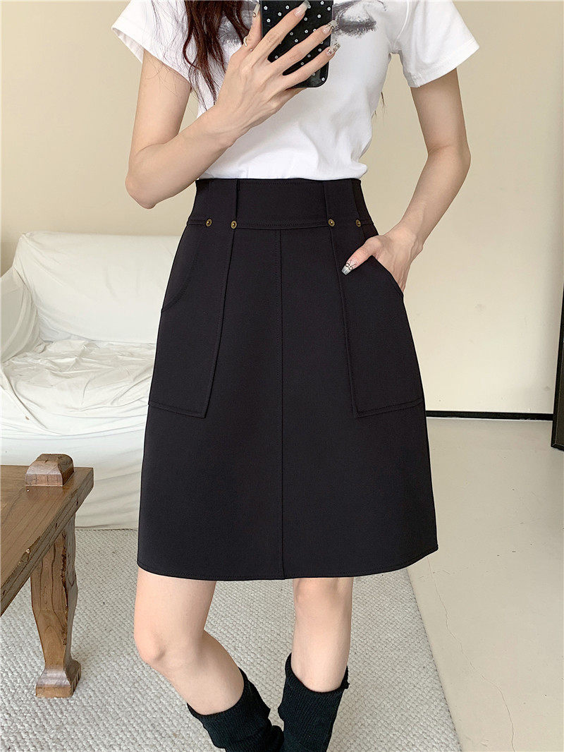 西装口袋半身裙女大码春夏季高腰遮跨a字中裙防走光中长款包臀裙