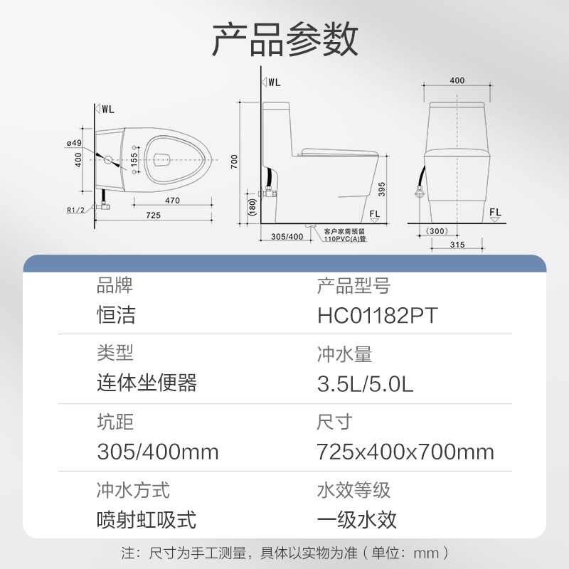 HEGII恒洁节水马桶防臭虹吸式陶瓷可调坑距家用坐便器1182