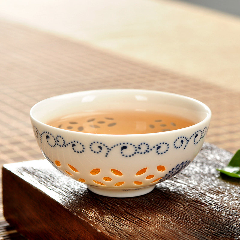青花镂空陶瓷小茶杯蜂窝镂空玲珑功夫茶具茶杯品茗杯小茶杯主人杯
