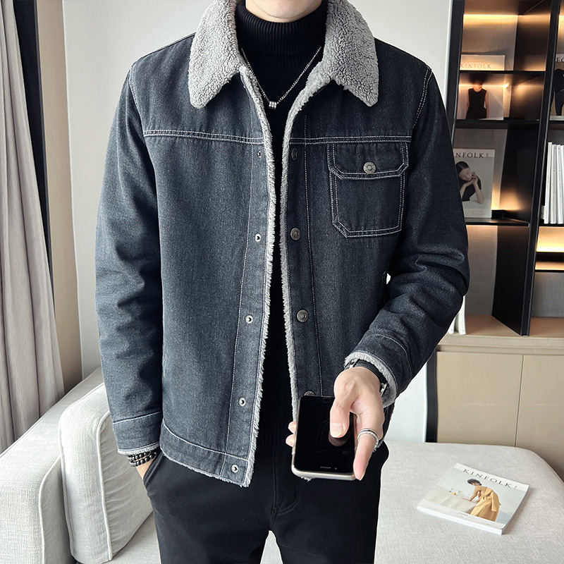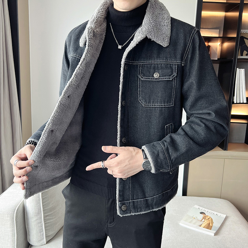 牛仔衣男士外套秋冬季甲克大码200斤加绒加厚休闲夹克土羊羔毛潮