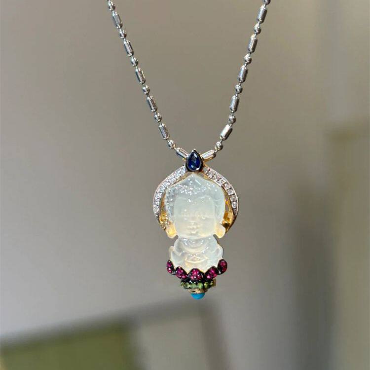 小红书同款莲花宝宝佛项链平安喜乐锆石锁骨链小众复古爆款颈链女