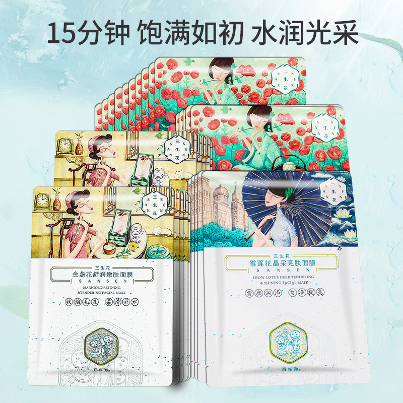百雀羚三生花面膜补水保湿舒缓贴片式护肤品官方官网正品女