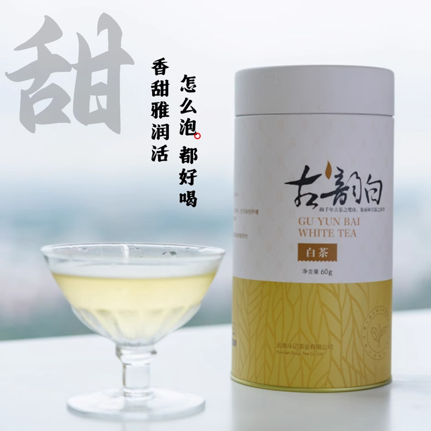 斗记茶业2501古韵白罐装散茶60g贡眉西双版纳花香蜜润甜云南白茶