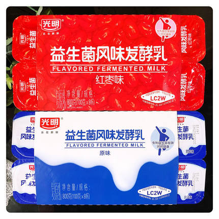 光明酸奶益生菌风味发酵乳16杯8连红枣原味100g早餐牛奶